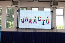 A jólesően hűvösre varázsolt csarnokban gyülekeztünk szombat délelőtt, hogy az évzáróval kezdetét vegye a diákok számára a hőn áhított VAKÁCIÓ.