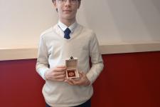 A képről Benedek hiányzik, díját Horváth Norbert tanár úr tartja kezében, aki a felkészítette a diákokat. Gratulálunk!