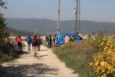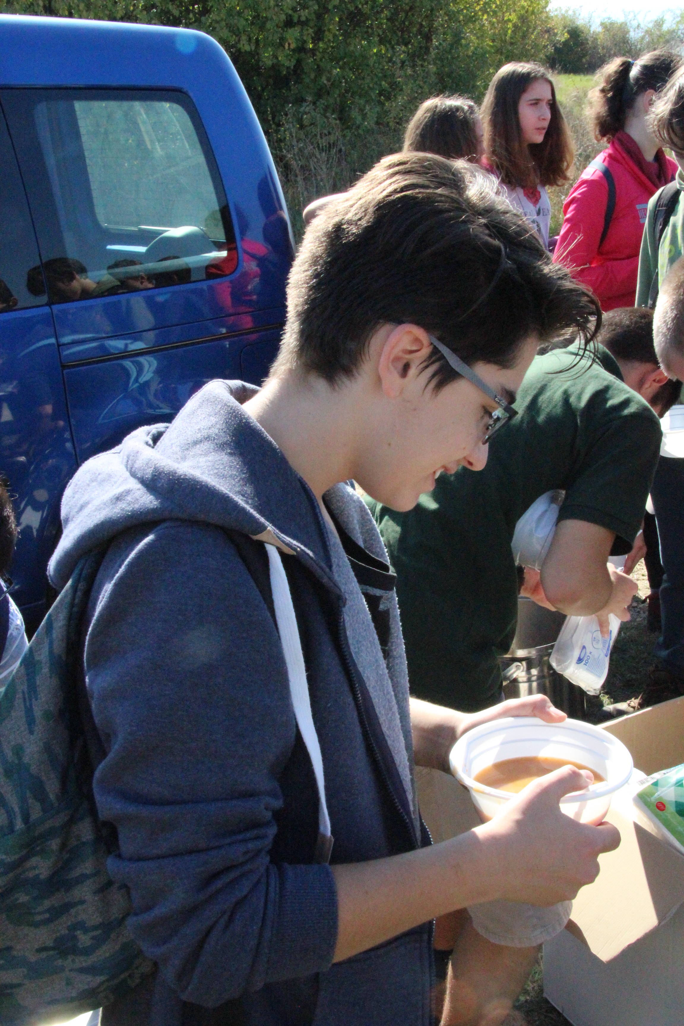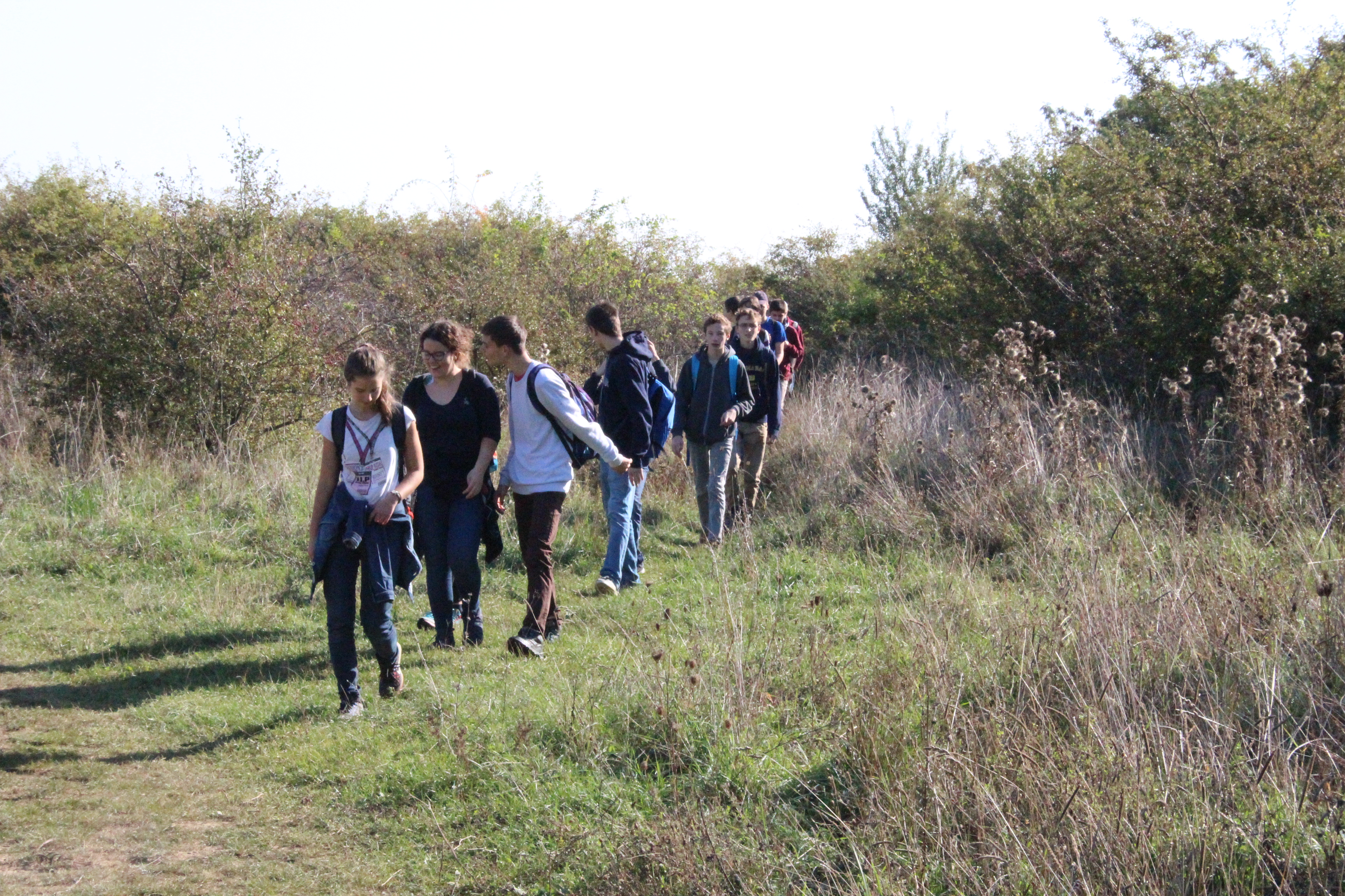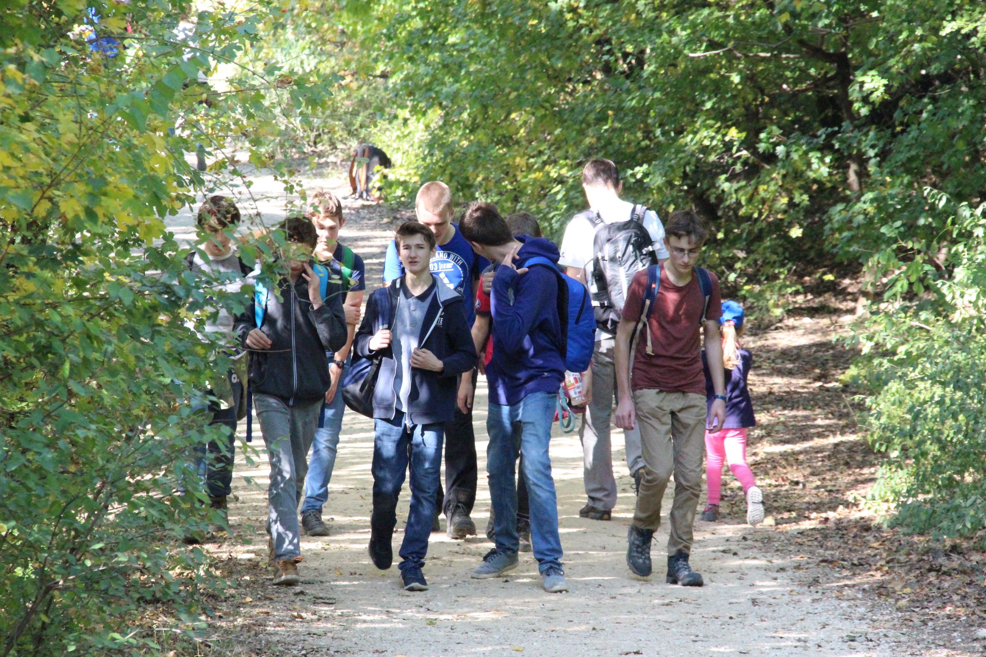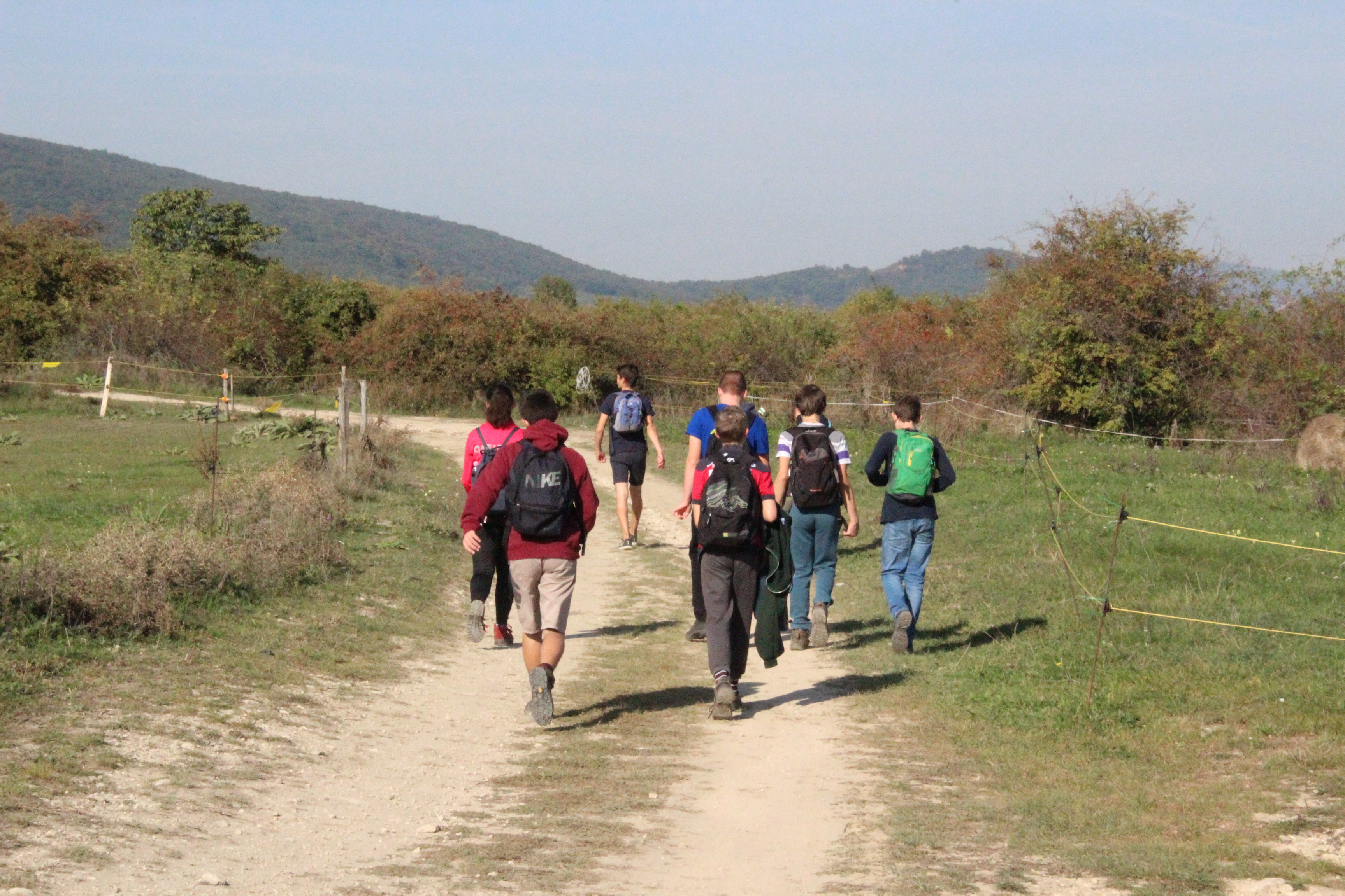 De nem adtuk fel! Elhalasztottuk a túrát két héttel későbbre, október 6-ra. És bejött! Most sikerült egy nappal megelőzni az újabb hidegfrontot, és a hét közben diákszíveket keserítő jó idő végét elcsíptük, így ragyogó őszi időben vághattunk neki a Pilisnek, hogy a Nagy-Kevély tövében, Csobánka határában megleljük a létszámot regisztráló Kutasy tanár urat (hisz ez a rendezvény is része az Egy Baárkában evezünk versenynek), és Tombor igazgató urat, aki elkalauzolta a különféle utakon érkező osztályokat Bognár tanár úr gulyáságyúvá átminősített autójához.