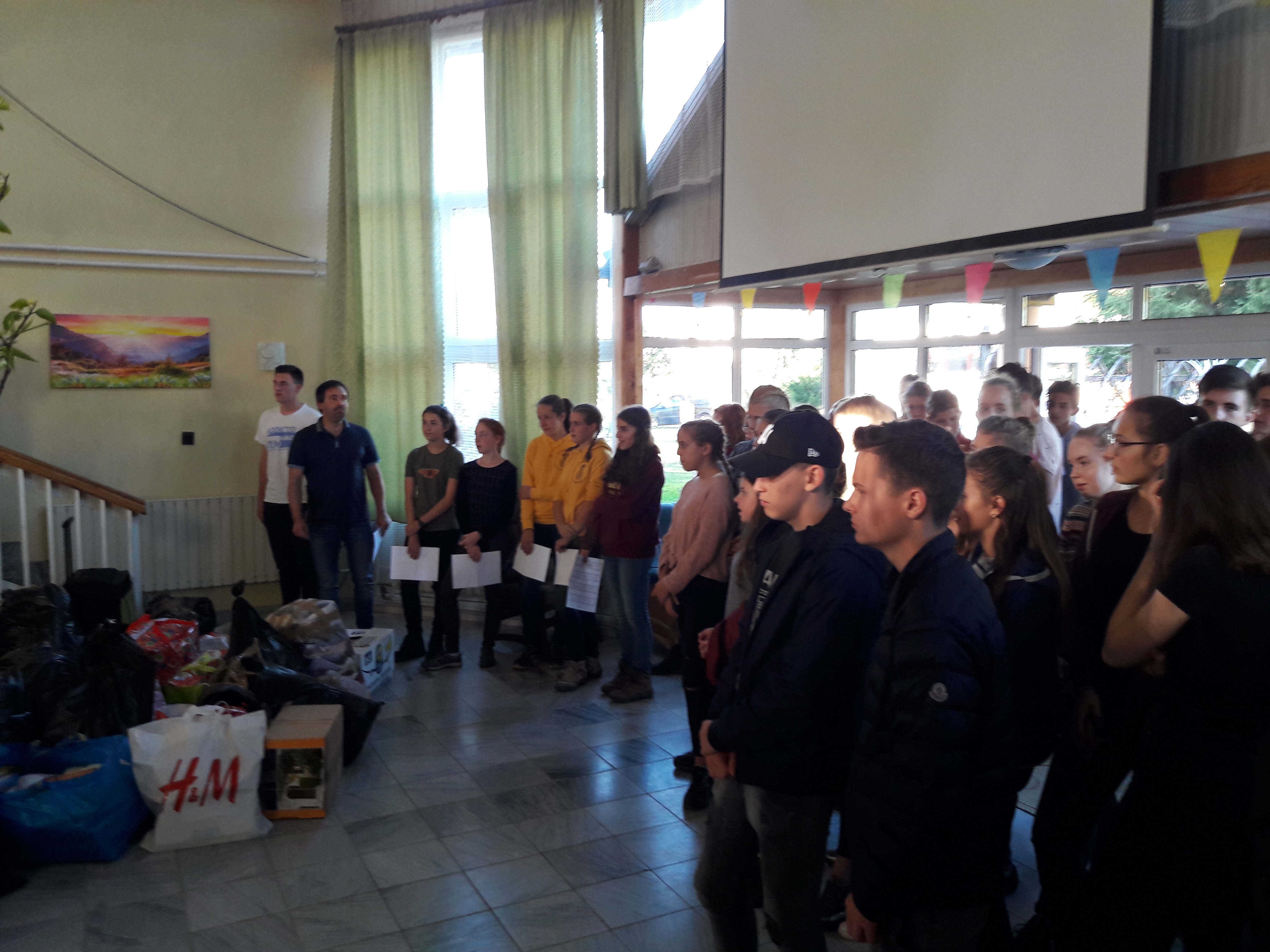A 10.C. osztály 32 fővel indult Nagyberegre a Határtalanul Program keretében, és annyi adománnyal, hogy az teljesen betöltötte a busz csomagterét. A táskáinkat a busz belsejében tornyoztuk fel hátul úgy, hogy nem lehetett kilátni a hátsó ablakon. A határon szerencsére nem pakolták ki a buszunkat ukrán oldalon, így minden adomány célba ért. Testvériskolai látogatásra készültünk, de a vártnál sokkal többel lettünk gazdagabbak.