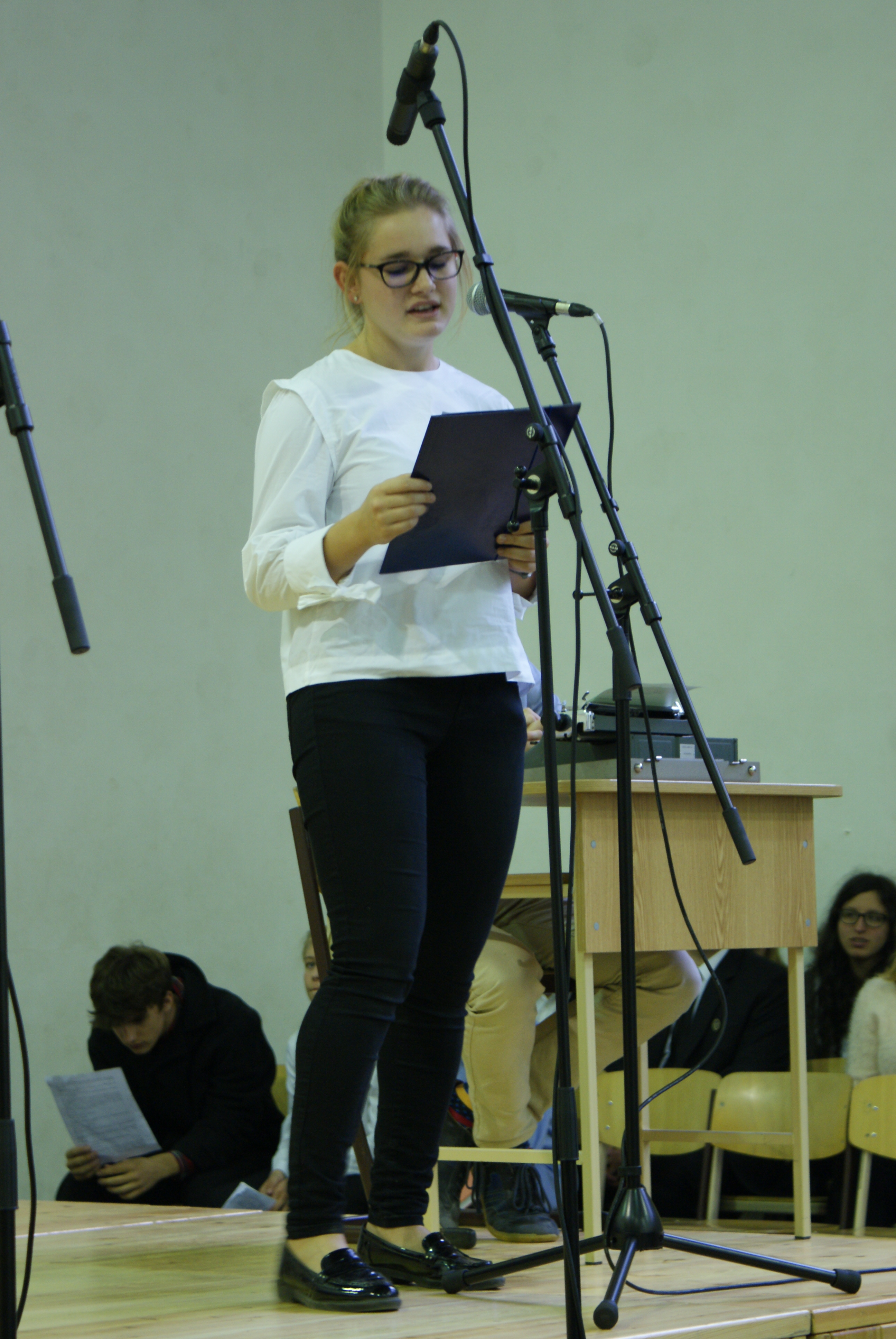 A műsorban elhangzott verseket Végh Nóra 11.B, Gados Márk és Rajkai Barnabás 11.D osztályos diákjaink tolmácsolták. A záró zenei produkcióban a 11.D osztály lányai vállaltak főszerepet.