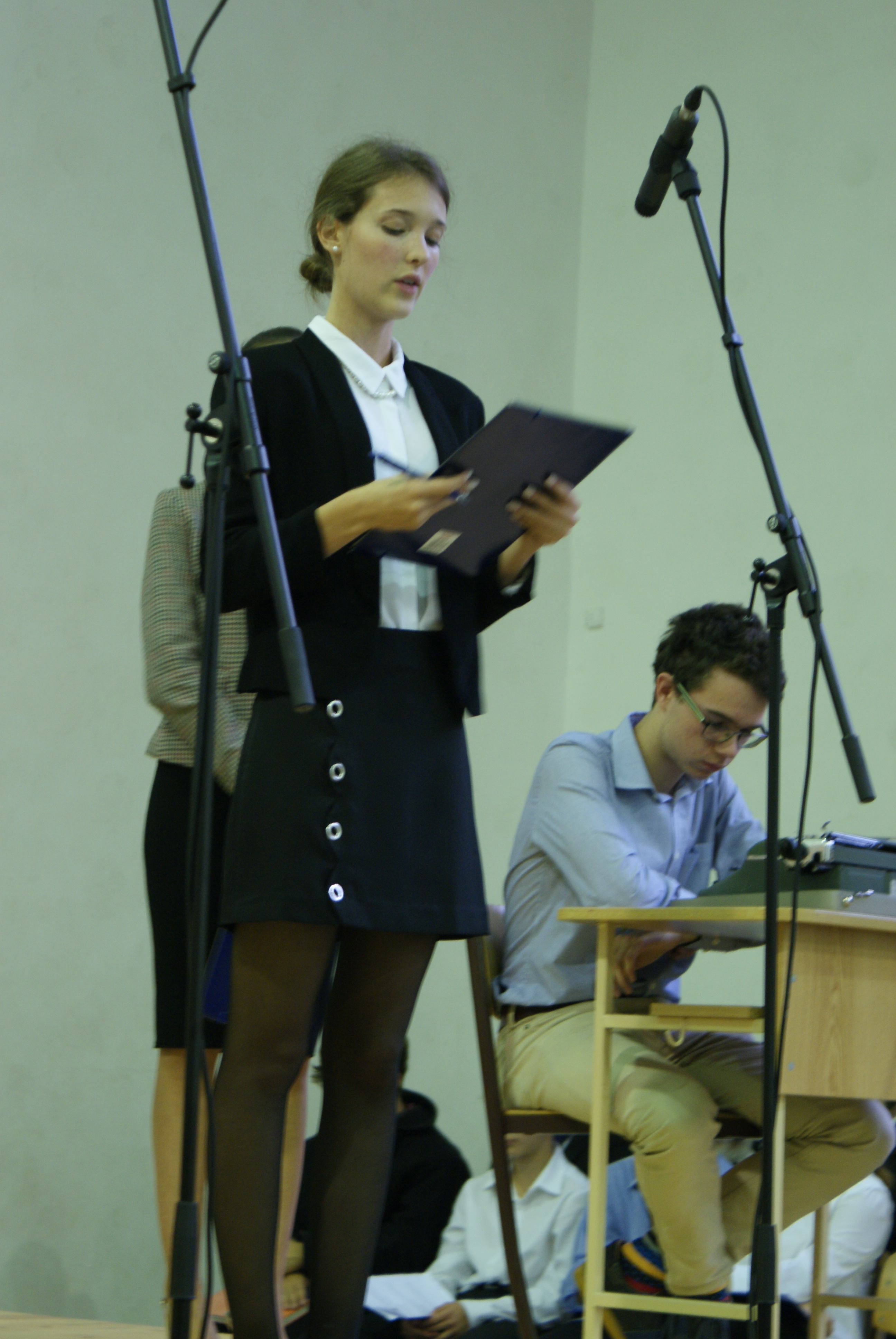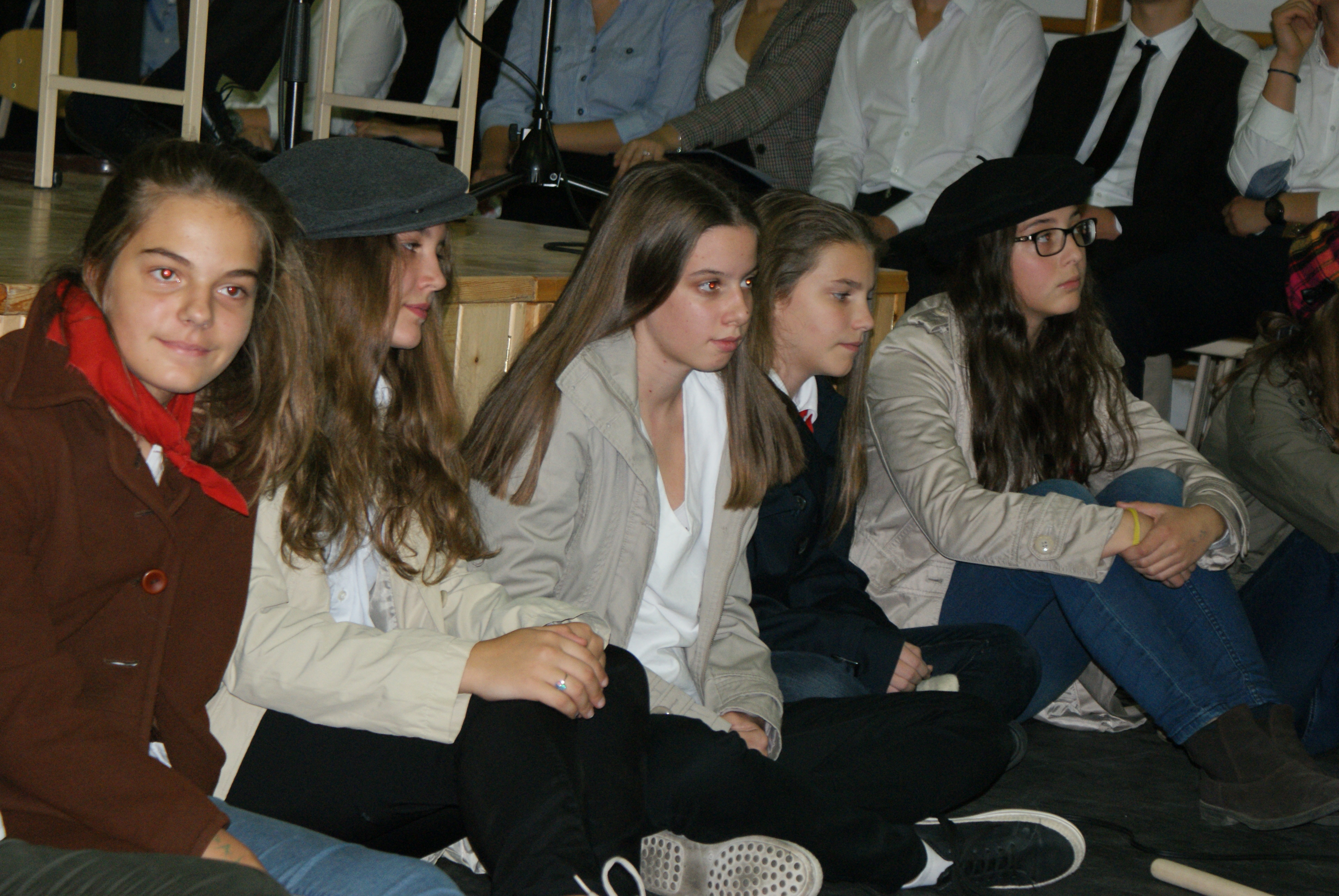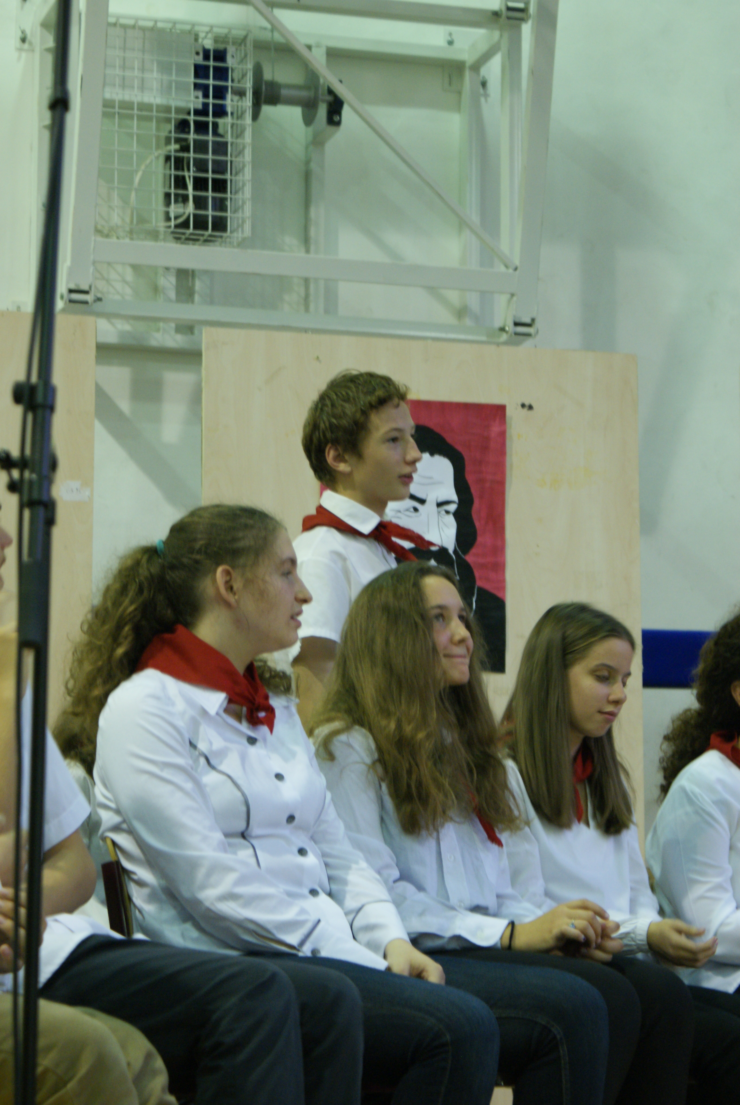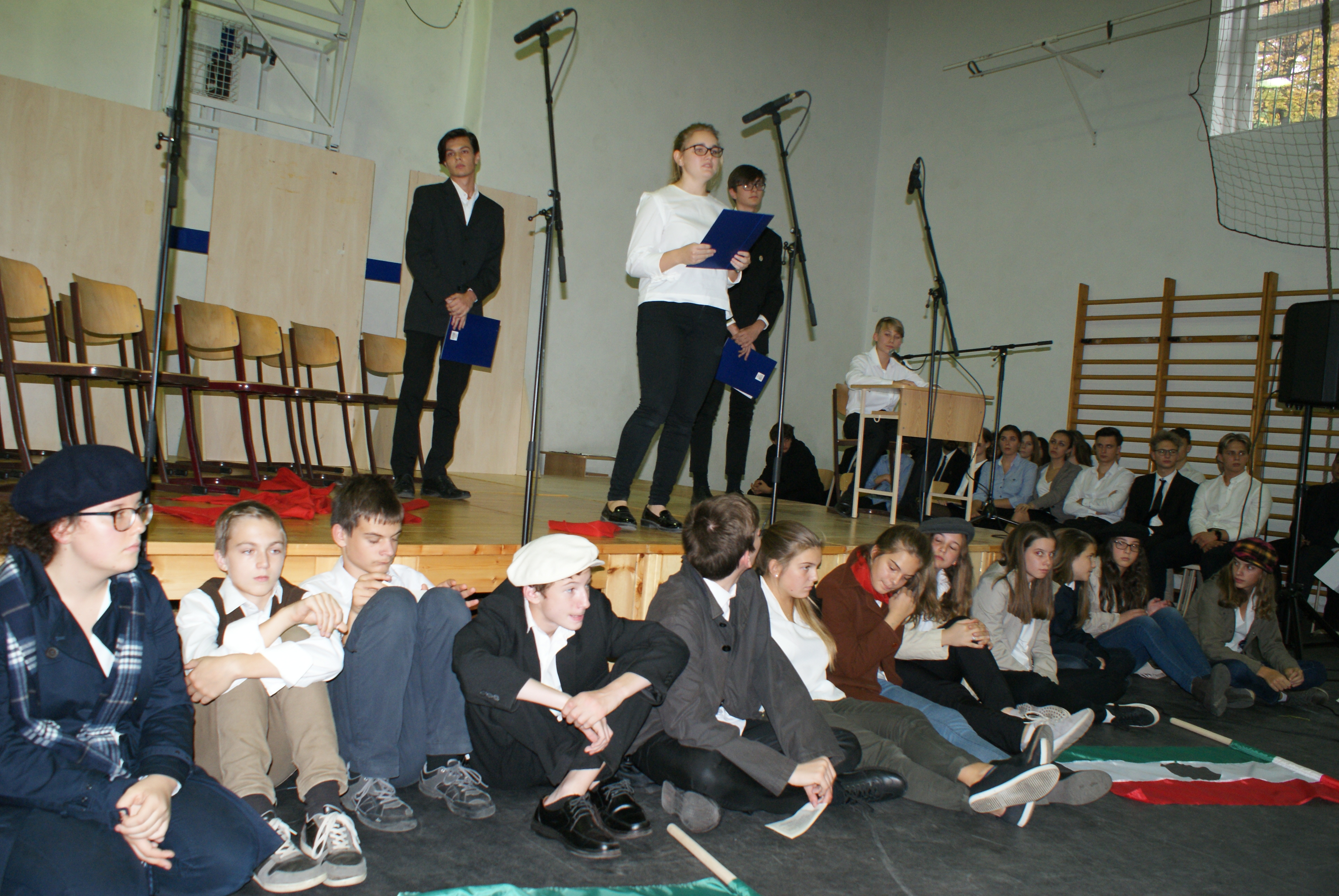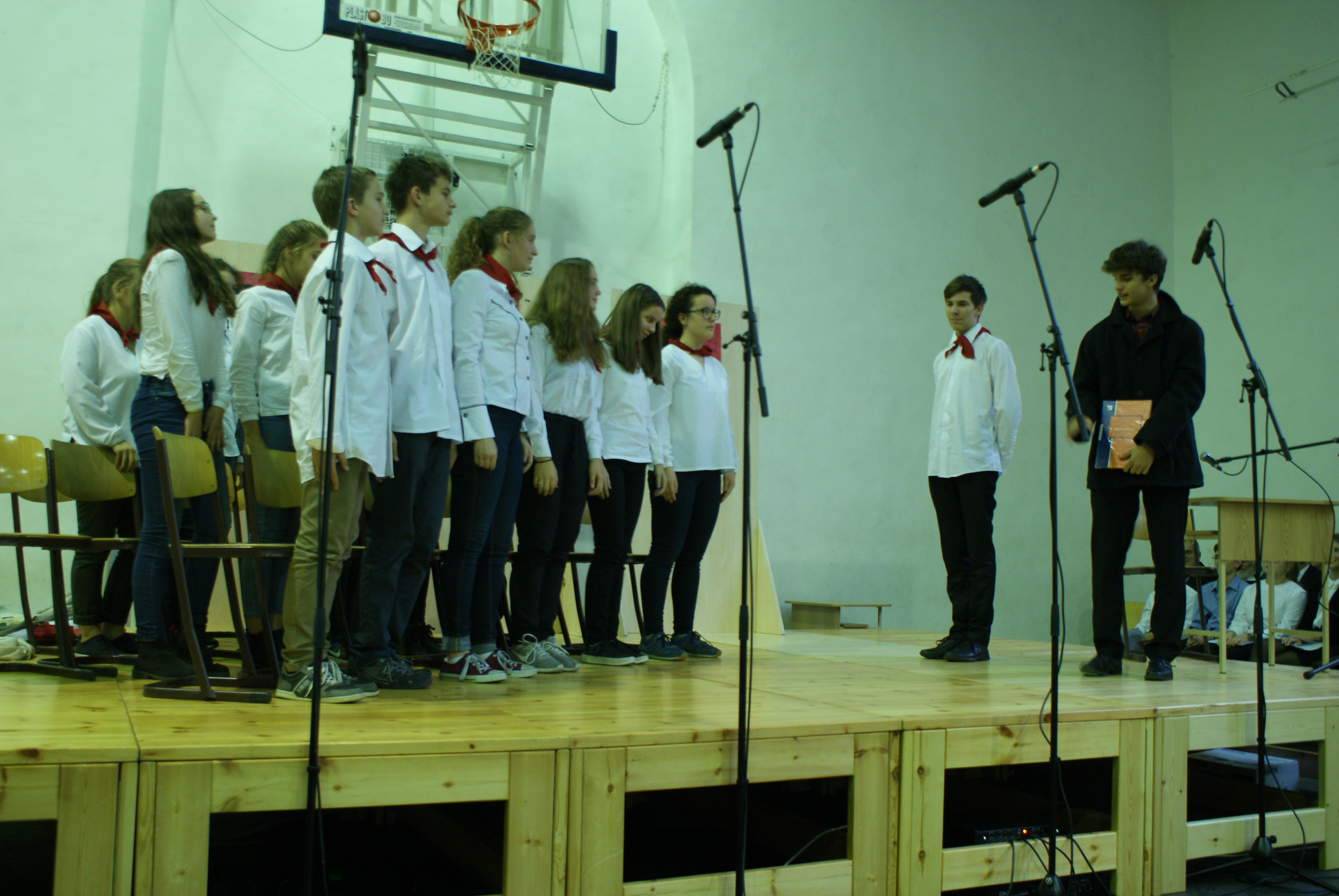 Az első jelenet egy hiteles jegyzőkönyvet elevenített fel, amely felvétetett a Szabó József Geológiai Technikum iskolagyűléséről 1950. szeptember 30-án; a jelenetet a 11.C osztály tanulói keltettek életre.
