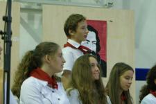 A 14 éves Kovács János naplót vezetett az októberi eseményekről. A naplóra kalandos körülmények között bukkantak. A gyermek írása és rajzai szívszorító dokumentumok. A naplóból Szücsik Gergely, 8.B osztályos tanuló olvasott fel.