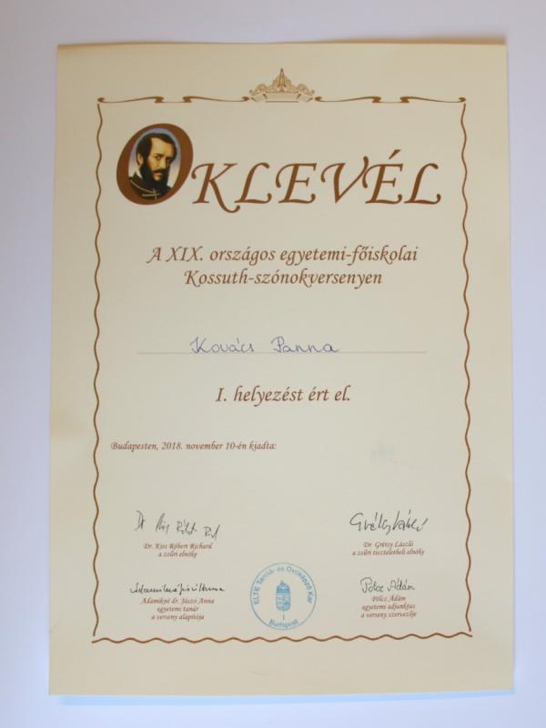 Oklevél I. hely