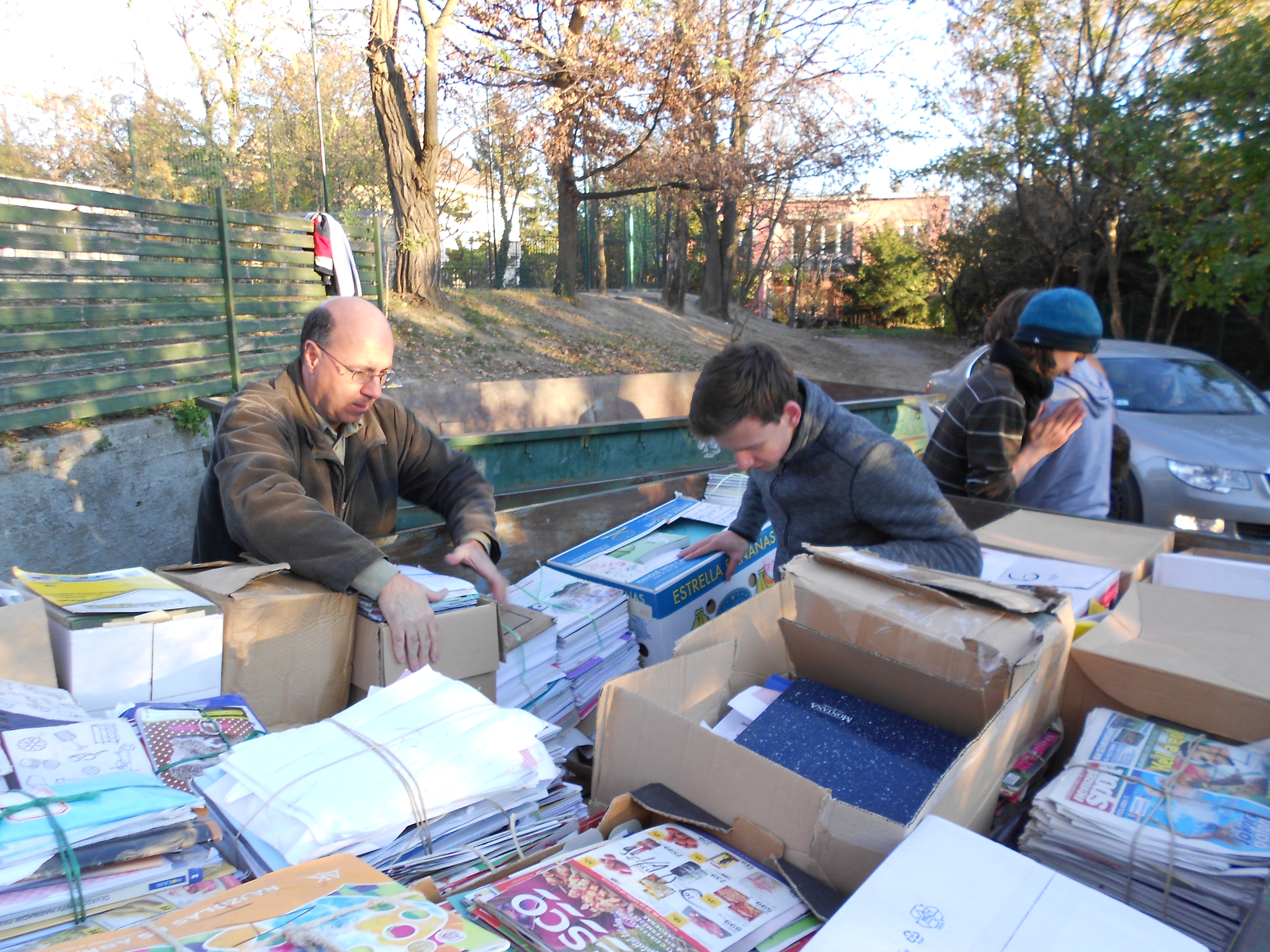 Az új helyszín megkönnyítette a papírt autóval hozók helyzetét is, mert a kialakított „körforgalom” jól működött: a teli autók a felső kapun jöttek be, és a teherlerakás után alul mentek ki. Örömünkre szolgált, hogy (eltérően az előző évektől) amikor valakinek ez nem sikerült tökéletesen, akkor sem hangzottak el indulatos mondatok, hanem a kedves szülők, nagyszülők járművei nem csak békésen elfértek egymás mellett, hanem ki is tudták kerülni egymást. Sőt időnként még segítették is egymást ebben! Köszönjük!