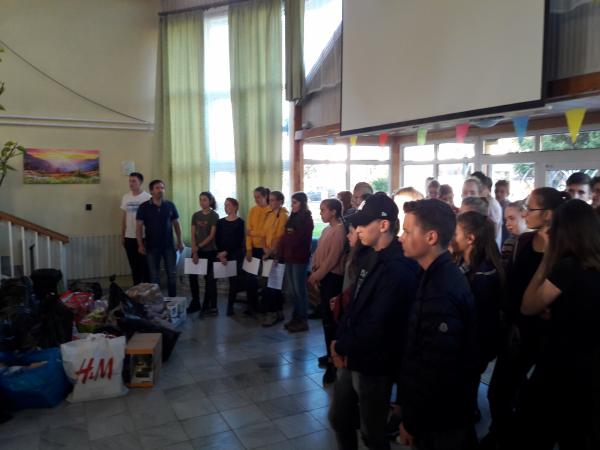 A 10.C. osztály 32 fővel indult Nagyberegre a Határtalanul Program keretében, és annyi adománnyal, hogy az teljesen betöltötte a busz csomagterét. A táskáinkat a busz belsejében tornyoztuk fel hátul úgy, hogy nem lehetett kilátni a hátsó ablakon. A határon szerencsére nem pakolták ki a buszunkat ukrán oldalon, így minden adomány célba ért. Testvériskolai látogatásra készültünk, de a vártnál sokkal többel lettünk gazdagabbak.