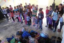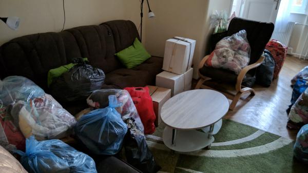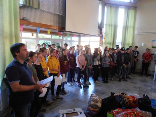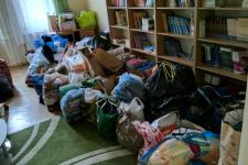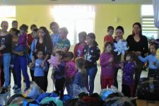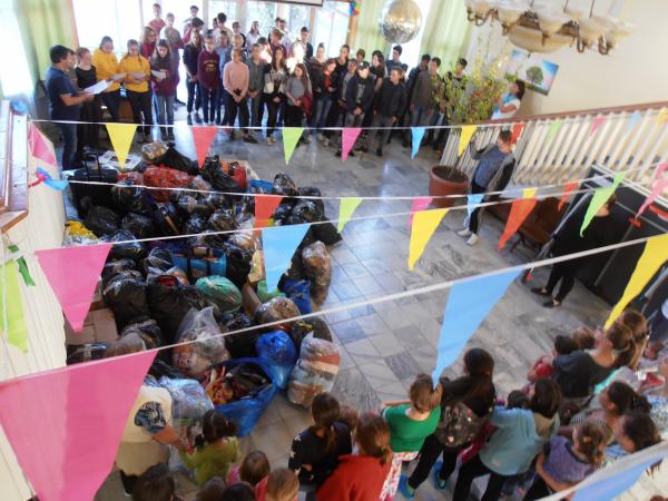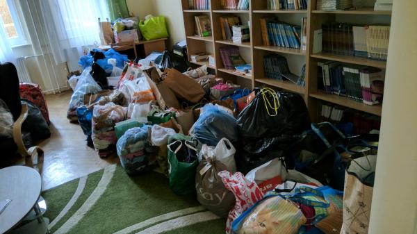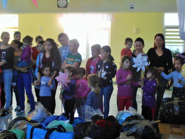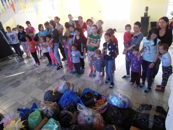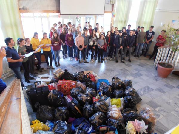 Az utazás előtti napokban szépen gyűltek az adományok, így ezeket egy idő után egy külön terembe kellett átvinni, és ott tárolni tovább.  A sok adomány nagy örömöt és egyben nagy izgalmat okozott mindenkinek, adományozóknak és adományozottaknak egyaránt: az előbbieknek a határon, ugyanis annyi gyűlt össze, hogy a busz teljes csomagterét elfoglalták, így a bőröndöket a busz utasterében kellett elhelyezni, kockáztatva ezzel egy, a szokásosnál is hosszabb várakozást a határ ukrán oldalán. Szerencsére egy óra alatt átjutottunk, ami nem volt sokkal hosszabb, mint egy átlagos határátkelés. De a kísérőtanárok és a sofőr izgalmánál sokkal nagyobb volt a nagydobronyi gyermekotthon lakóinak izgalma, akik miközben a Baár-Madasos diákok előadását hallgatták, titokban már kiválasztották a táskákból, csomagokból kikandikáló ajándékokat, plüss állatokat. Megható érzés volt látni az örömöt a szemükben. A legkisebbek talán a szélforgóknak örültek a legjobban. – Természetesen komolyabb ajándékok is jutottak nekik! Ezután a lányok megmutatták diákjainknak a szobáikat, és egy kicsit beszélgethettek is.