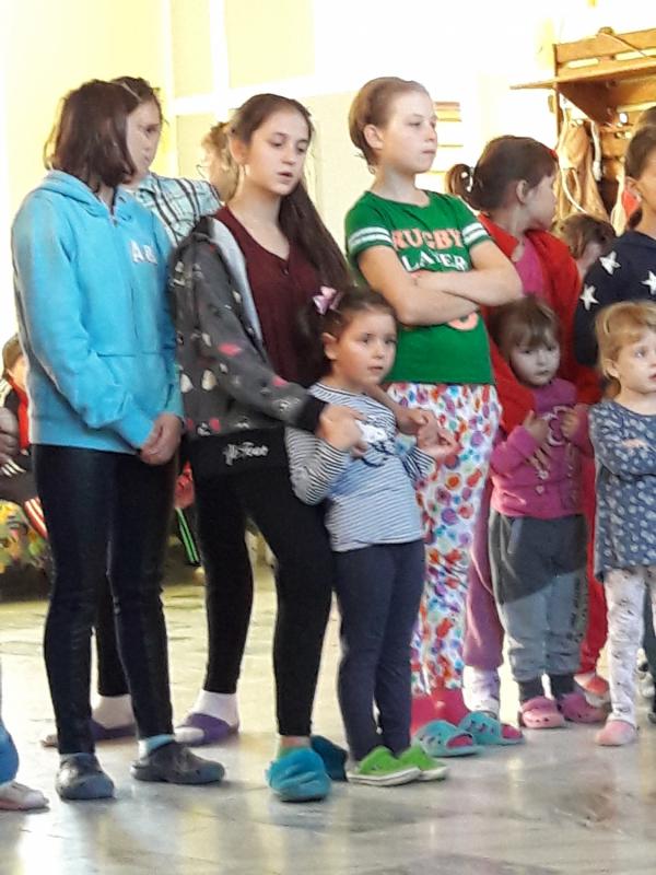 A programban részt vevő diákok már jóval az utazás előtt tudták, hogy meglátogatjuk a gyermekotthont, ahol egy rövid, dalokból álló előadás után (ruha-, játék-, pénz) adományokat adunk át. – Azaz mégiscsak vittünk „termékeket”, igaz, nem mi készítettük el, hanem összegyűjtöttük.
