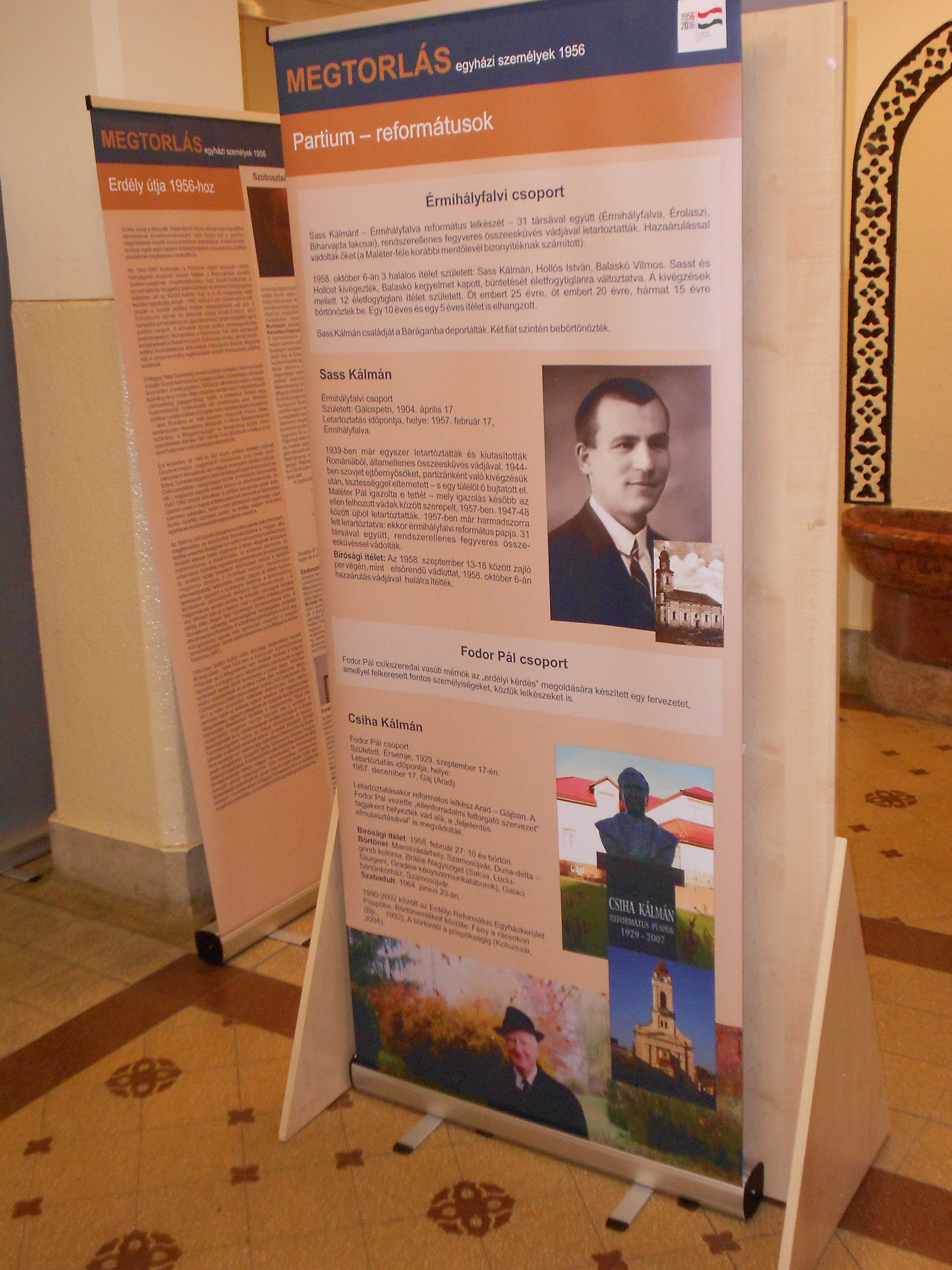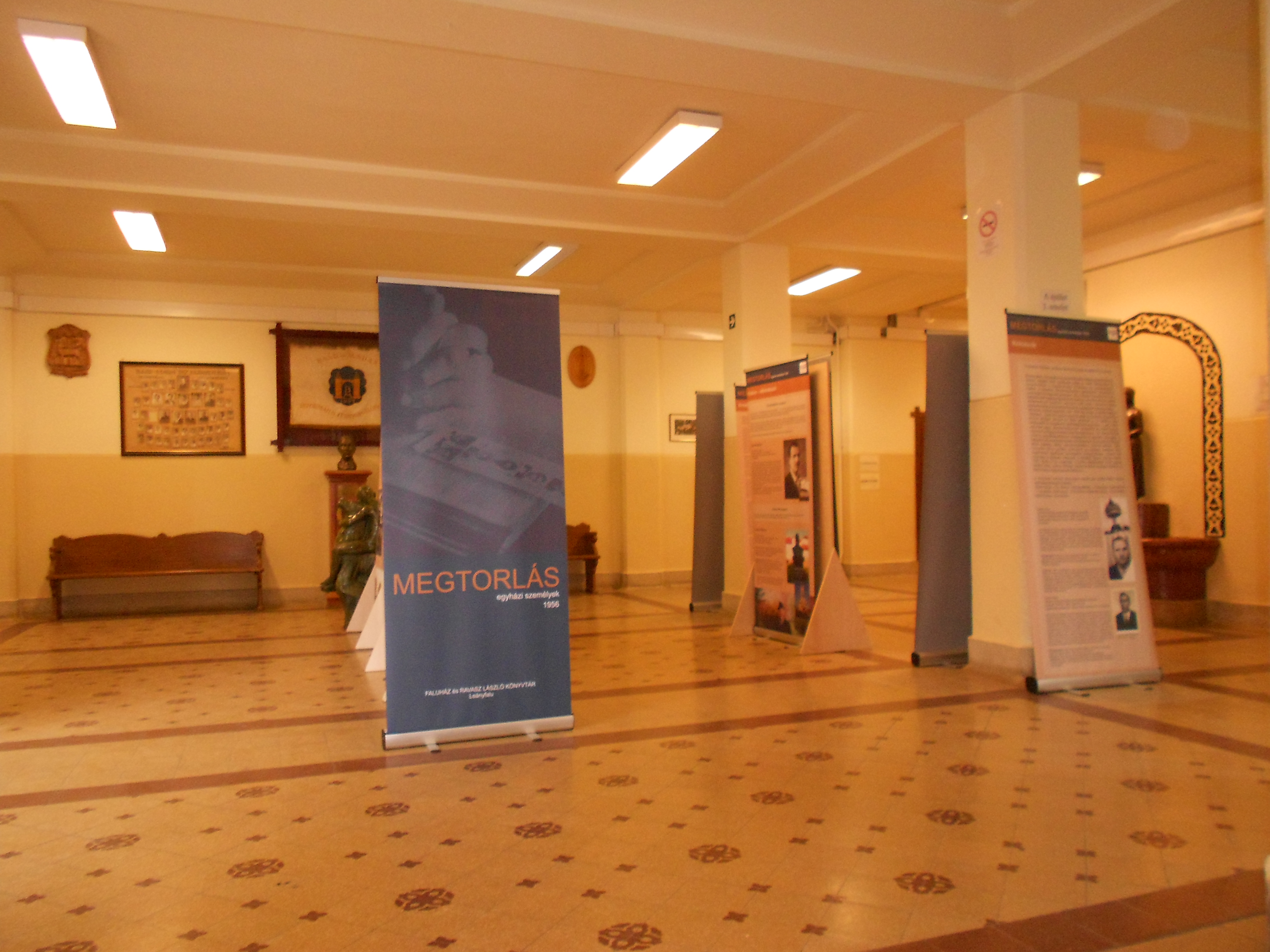 Ezzel párhuzamosan, az első emeleti aulában –a leányfalui Faluház és Ravasz László Könyvtár jóvoltából– kiállítás nyílt az 1956-os forradalom után meghurcolt egyházi személyekről. 21 tabló mutatja be a főbb eseményeket, a fontosabb személyek életútját, kálváriáját. A kiállítás érdekessége, hogy a nem nagyon ismert erdélyi áldozatokat, életútjukat, meghurcoltatásukat, derékba tört életüket is részletesen ismerteti.