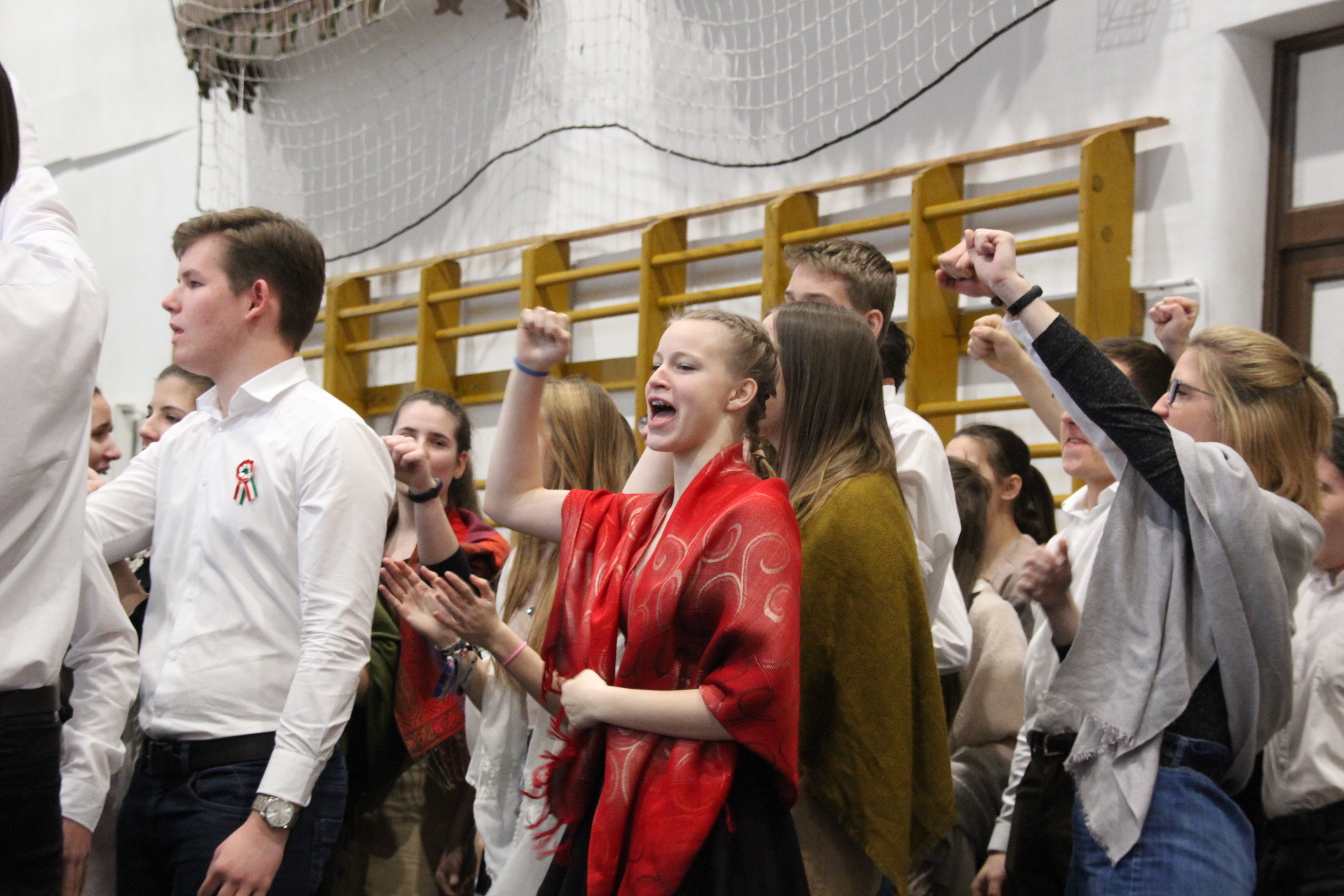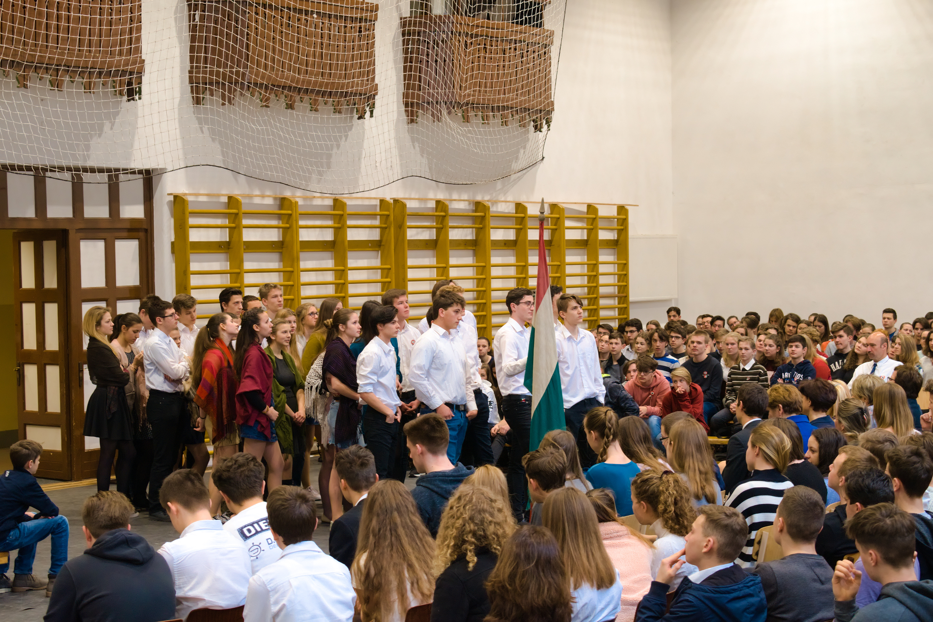 A tornateremben az egész gimnázium megnézte Molnár György tanár úr rendezésében a 11. d osztály frappáns, pörgős, a megszokott elemeket teljesen mellőző, alapvetően az érzékszervekre és érzelmekre ható drámapedagógiai elemekre építő műsorát. Majd osztályonként felkerestünk két-két budapesti emlékhelyet. Ezek egyike a forradalomhoz, a másik a szabadságharchoz kapcsolódott. Az egyik Pesten volt, a másik Budán, és az egyik ismertebb, a másik rejtettebb volt. Így volt akik a Pilvax kávéház (helyét) keresték fel, voltak a Batthyány örökmécset, míg mások Görgei szobrát. De az iskola közelében lévő emlékekhez is eljutottunk: Tóth Ágoston emléktáblájához, Gábor Áron sajátos alakú emlékművéhez, vagy Kovács J. honvéd sírjához.