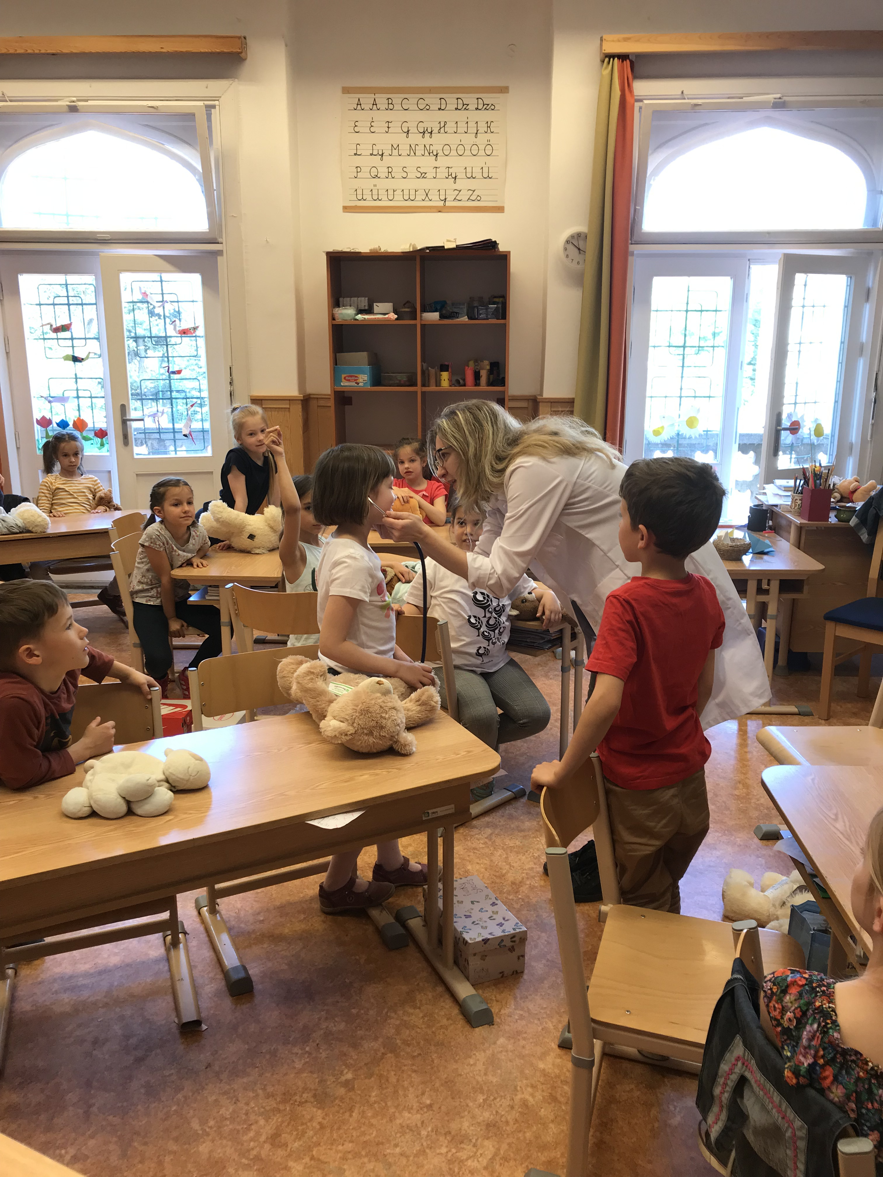 A Budapesti Orvostanhallgatók Egyesülete ebben a tanévben is megtartotta iskolánkban a már jól bevált és eddig mindig nagy sikert arató Teddy maci programját. Az elsősökhöz nagy lelkesedéssel érkező „Maci-doktornéni” azonnal megtalálta a hangot a gyerekekkel, akik egy remek játékos foglalkozás keretében ismerkedtek testünk különböző részeivel, belső szerveinkkel, az esetlegesen előforduló betegségekkel, azok gyógyítási lehetőségeivel. Kíváncsiság, érdeklődés, jó hangulat és rengeteg kérdés jellemezte ezt az igazán tanulságos egészségnevelő foglalkozást.