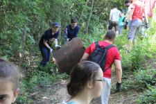 Gyönyörű, verőfényes napot sikerült kifognunk, amelyen osztályunk elment meglátogatni a Pálvölgyi-barlangot. Ámde nem elsősorban kikapcsolódni mentünk, hanem hogy kisegítsük az ottani természetvédelmi terület alkalmazottait a szemétszedésben. Ugyan a barlangot körbevevő erdőcske először tisztának tűnt, ám ahogy kicsit beljebb mentünk, észrevettük, hogy mennyire sok hulladékot is lehet találni. Kisebb csoportokban kutattunk a szemét után (nem mintha annyira kellett volna keresni), és az összegyűjtött hulladékokat hatalmas, fekete szemetes zsákokba gyűjtöttük. Természetesen találtunk olyan dolgokat, amikre mi is számítottunk, például: műanyag zacskókat, cigarettacsikkeket, üvegeket és palackkupakokat, viszont a közel 2 óra alatt érdekesebb kincsekre is bukkantunk. Többek között találtunk egy már rothadófélben lévő Trabantot, két bojlert, nem beszélve a rengeteg zokniról, amikhez természetesen egy félzsáknyi cipő is társult. Közben szisztematikusan gyűjtöttük az érdekesebb kisebb tárgyakat is, és felhalmozott értékeink között helyet foglalt például egy egész készletnyi bontatlan szépségtermék (rúzs, szempillaspirál, körömlakk stb.), egy Amerikai pite CD, egy serpenyő, egy kötőtű, egy zsebszámológép, és még egy antiknak látszó érmét is sikerült előásnunk a hatalmas kupacnyi szemét közül. Olyannyira sok zsákot sikerült megtöltenünk, hogy az elején még hatalmasnak tűnő konténer az időnk lejártával teljesen megtelt az általunk összegyűjtött hulladékkal. Szorgos munkánk azonban nem maradt jutalom nélkül, a barlang alkalmazottai mindkét ott lévő osztály mellé kirendeltek egy idegenvezetőt, aki ingyen körbevezetett minket a barlang egyik rövidebb túraútvonalán. Megcsodálhattunk rengeteg kőzetet és cseppkőalakzatot, sok-sok érdekességet hallhattunk a barlang múltjáról, de aminek a legjobban örültünk e sok munka után, az a hűvösség volt, amit a barlang nyújtott a megfáradt diákoknak.