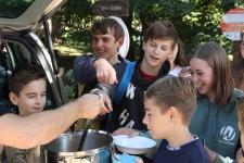 A tanév végén a nyugállományba vonult Bárdos tanár úr ötletét viszont megvalósítottuk: az „örökös ökoiskola” címhez méltóan idén majdnem mindenki hozott magával tányért és evőeszközt, így csupán tucatnyi műanyagtányérral növeltük az ökológiai lábnyomunkat – háromszáz helyett... Így köszönet illet mindenkit, aki komolyan vette szervezők erre irányuló kérését!