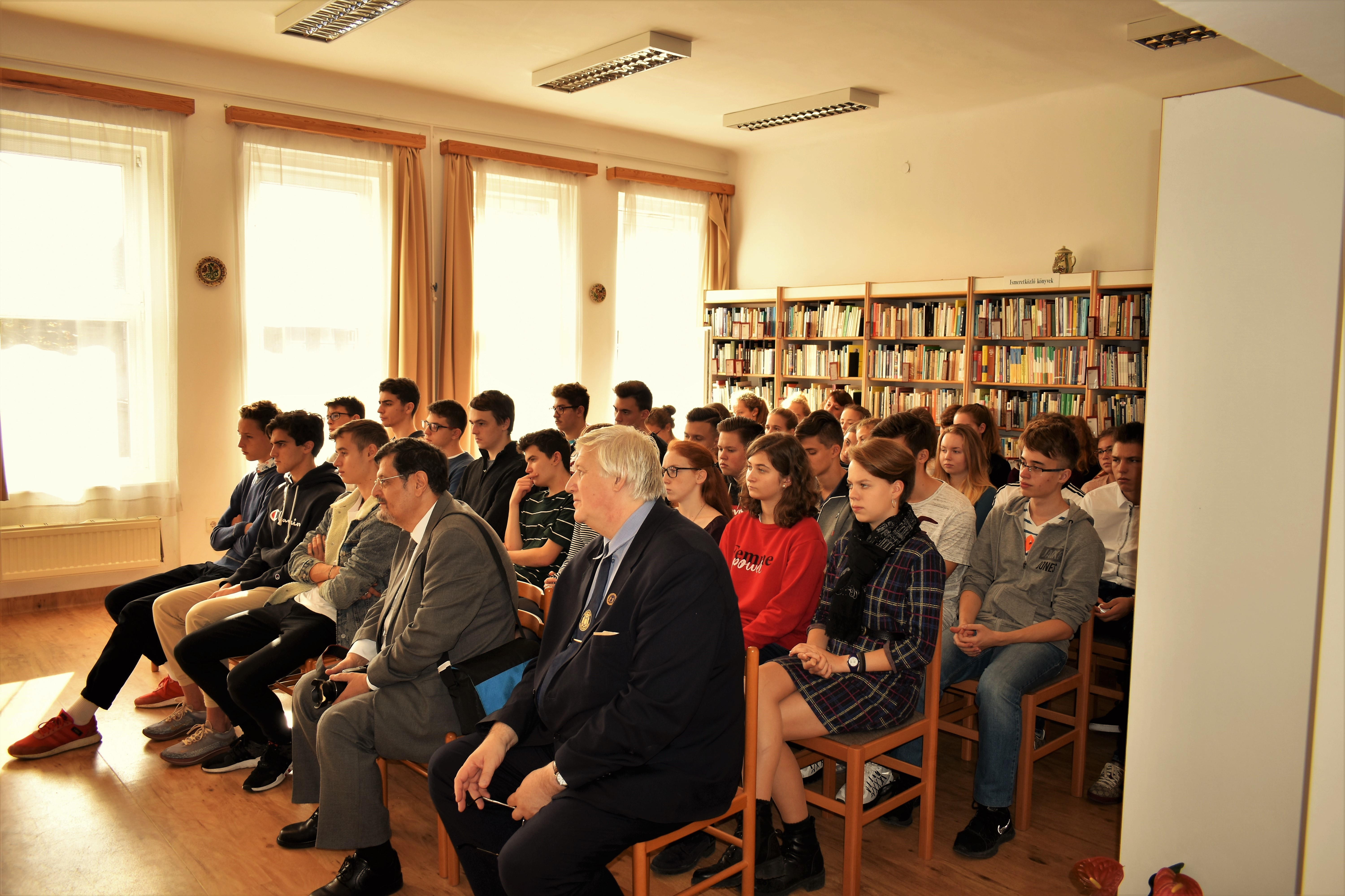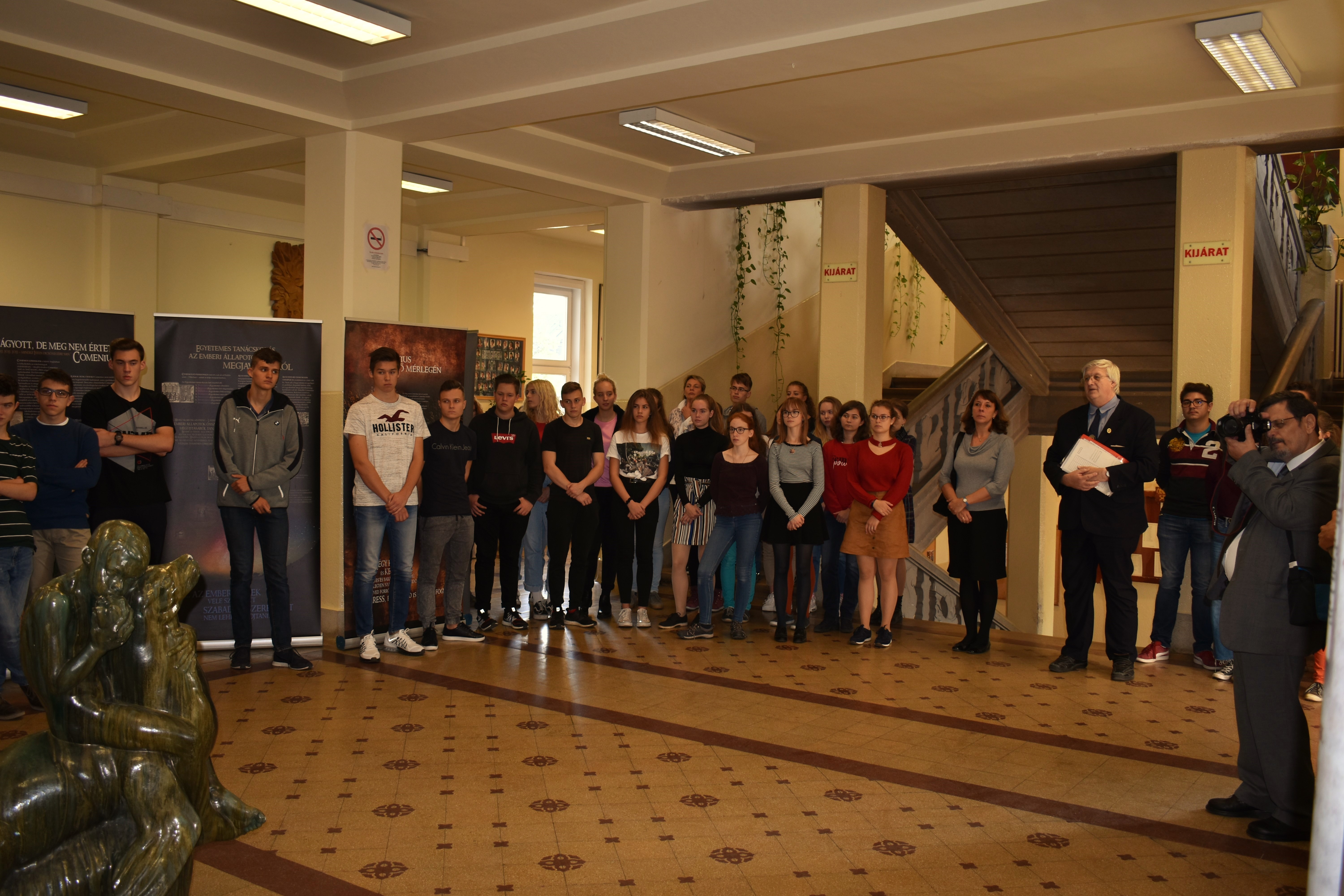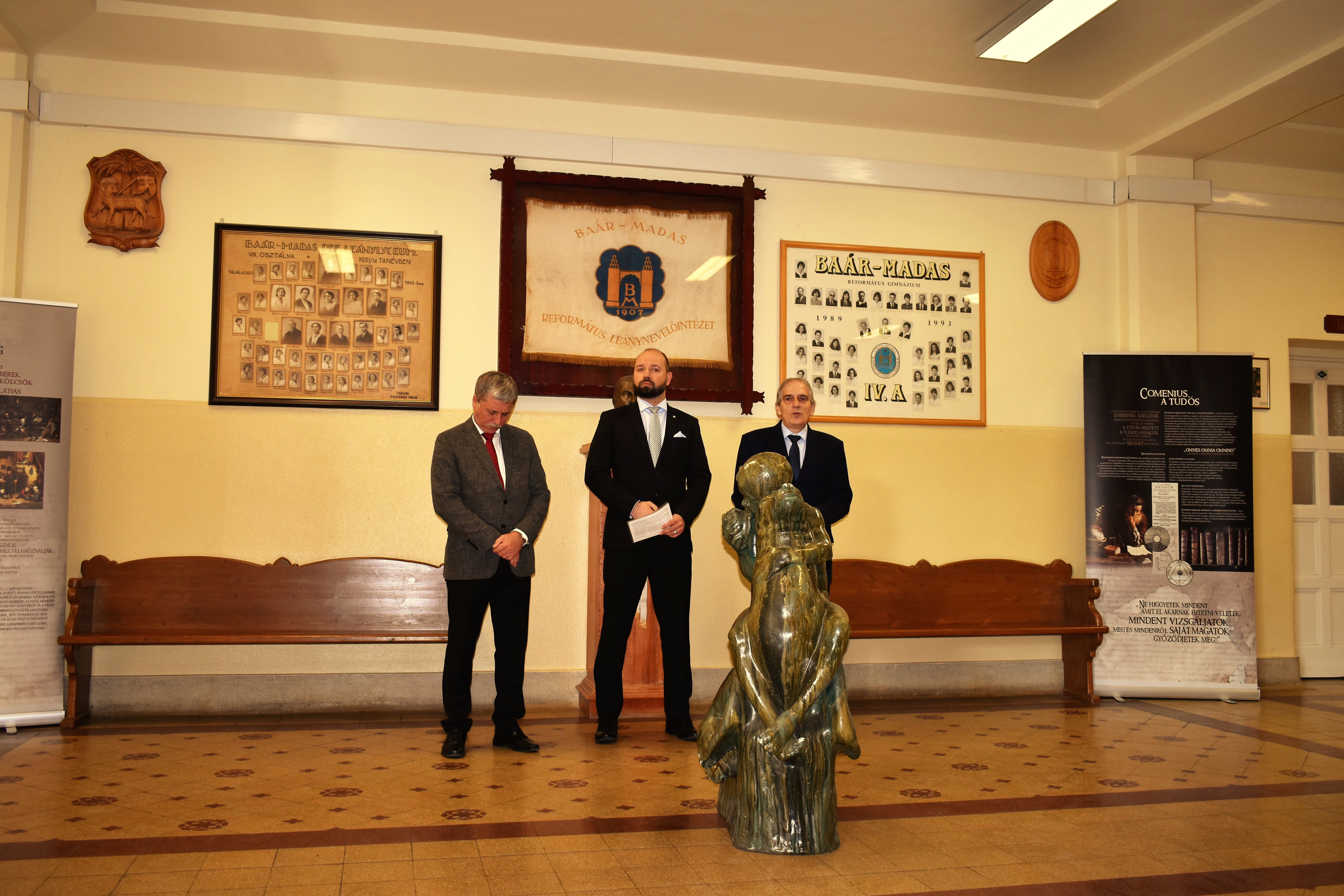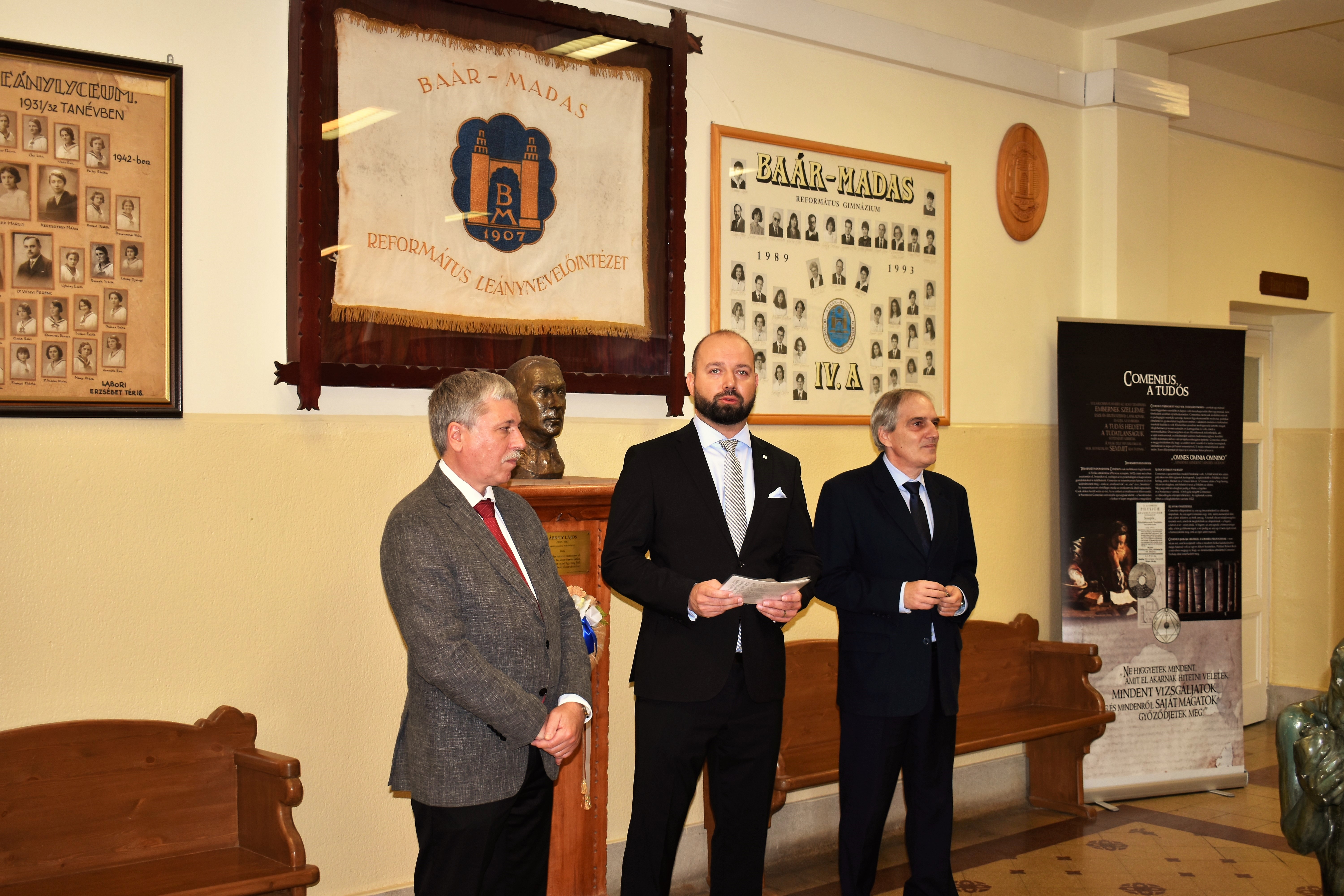 „Képzeld el, ma találkoztam a cseh nagykövettel!” – október 14-én a Baár-Madas diákjai közül többen ezzel a hírrel érkezhettek haza otthonukba. S nem is túloztak! Ugyanis a fent említett napon iskolánkba látogatott a Cseh Köztársaság magyarországi nagykövete, Bial Tibor, hogy megnyissa azt a kiállítást, amelyet Jan Amos Komensky (Comenius Ámos János), a XVII. századi zseniális cseh-morva pedagógus tiszteletére – emlékére rendeztek meg. A Nagykövet úr méltatta Comenius nagyságát, pedagógiai újításait, utalt kalandos életútjára; s arra biztatta a megjelenteket, hogy gondosan tekintsék át a kiállítás anyagát. Külön felhívta a figyelmünket a nagyszerű pedagógusnak 1650-54 közötti életszakaszára, amikor I. Rákóczi György erdélyi fejedelem özvegyének Lorántffy Zsuzsannának a meghívására Sárospatakon munkálkodott.