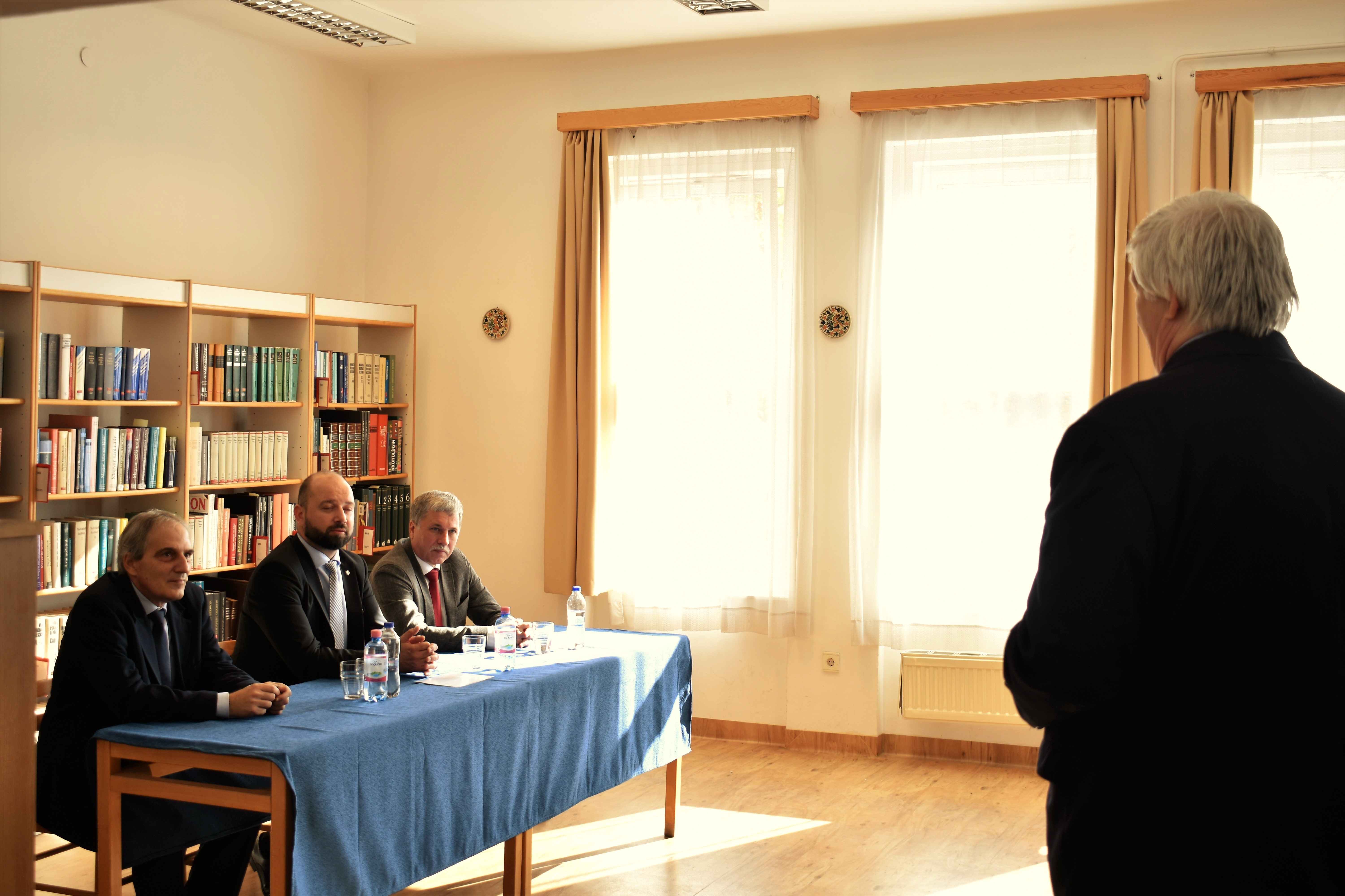 A találkozó második, könyvtárbeli részében vendégünk rövid előadást tartott a mai cseh-magyar kapcsolatokról, s azt kérte a jelenlévőktől, hogy Csehország „közhelyszerű” nevezetességein túl ismerjék meg „majdnem-szomszédunknak” minél több értékét, látogassanak el országukba. A jó hangulatú, derűs találkozón egy közvetlen, rokonszenves embert ismerhettünk meg a Nagykövet úr személyében, a kiállítás anyaga pedig sok új ismeretet adhat az érdeklődőknek.