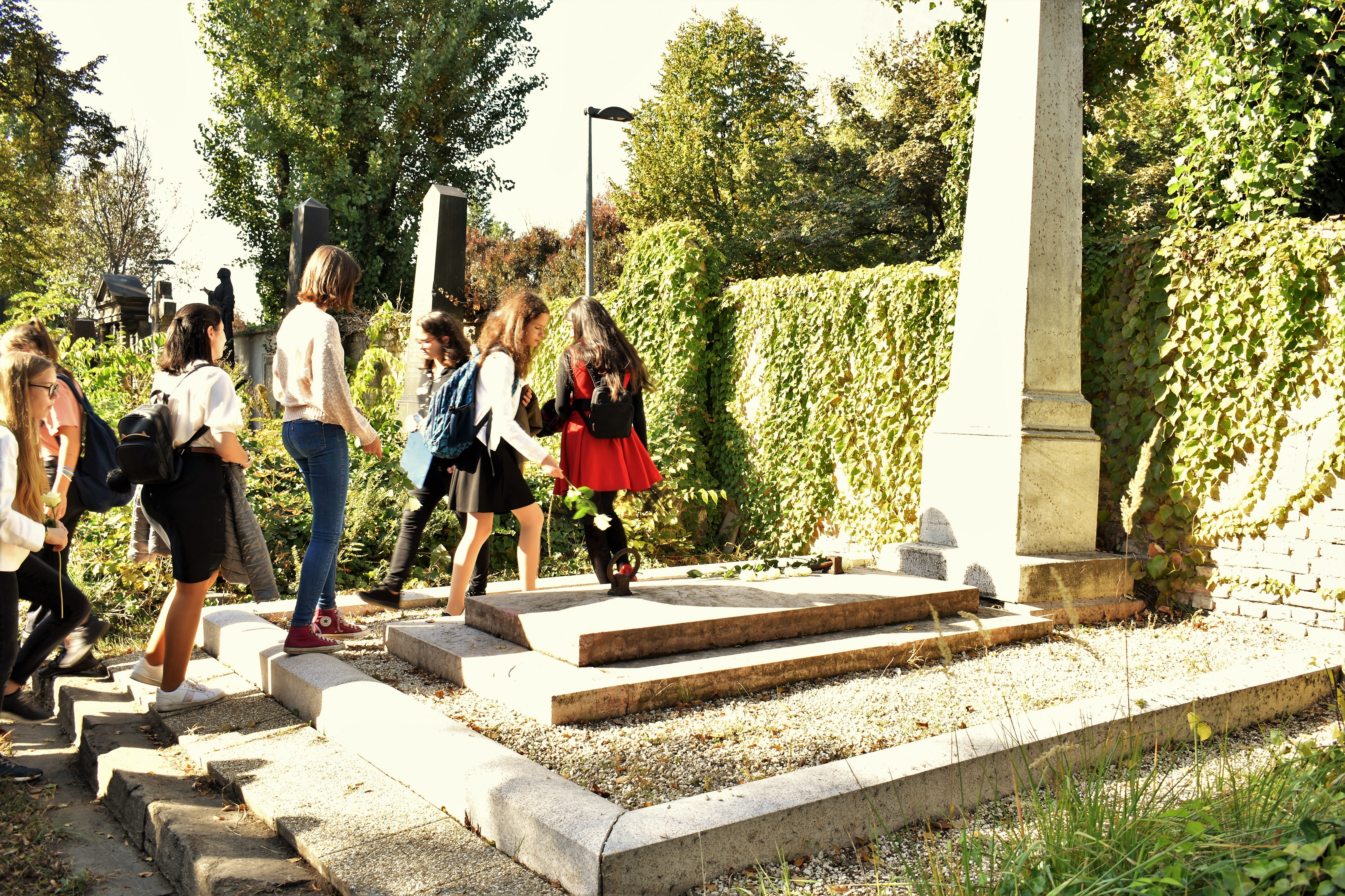 Szokásunkhoz híven bejövő osztályainkkal idén is ellátogattunk a Fiumei Úti Sírkertbe, hogy elhelyezzük fehér rózsáinkat Baár János és Madas Károly szépen rendben tartott nyughelyein. Alapítóink életútját hallgatva elgondolkodhattunk azon, mennyi mindennek kellett történnie ahhoz, hogy iskolánk ma ilyen formában működhessen. A színes levél-kavalkádban, őszi napfényben sétálva hálát adhattunk, és emlékezhettünk.