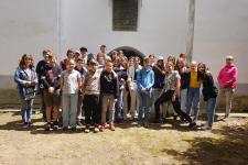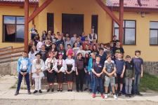 Május 25-én, bár az időjárás előrejelzés viharos esőt ígért, szekerekkel nekivágtunk a már nagyon várt gyimesi túrának. Persze a szekerek nem vittek egészen a célig, egy hegyi porta megnyíló ajtajáig, ahol a csángó létet ismerhettük meg. Közös szalonnasütés, gyógynövények gyűjtése, puliszka kóstolás, vajköpülés. Mindezek az élmények oldottak az előző napok sűrű történelmi információit. A meredek hegyoldalt nem mindenki egyforma erőnléttel mászta meg, de jó volt látni, ahogy egymást bíztatták, segítették, hogy mindenki felérjen a csúcsra. A hegytetőn egyik diákból fakadt ki a kívánság: Itt tartsuk a mai áhítatot. Így is tettünk, a lenyűgöző gyimesi tájban, napsütésben dicsértük Istent.