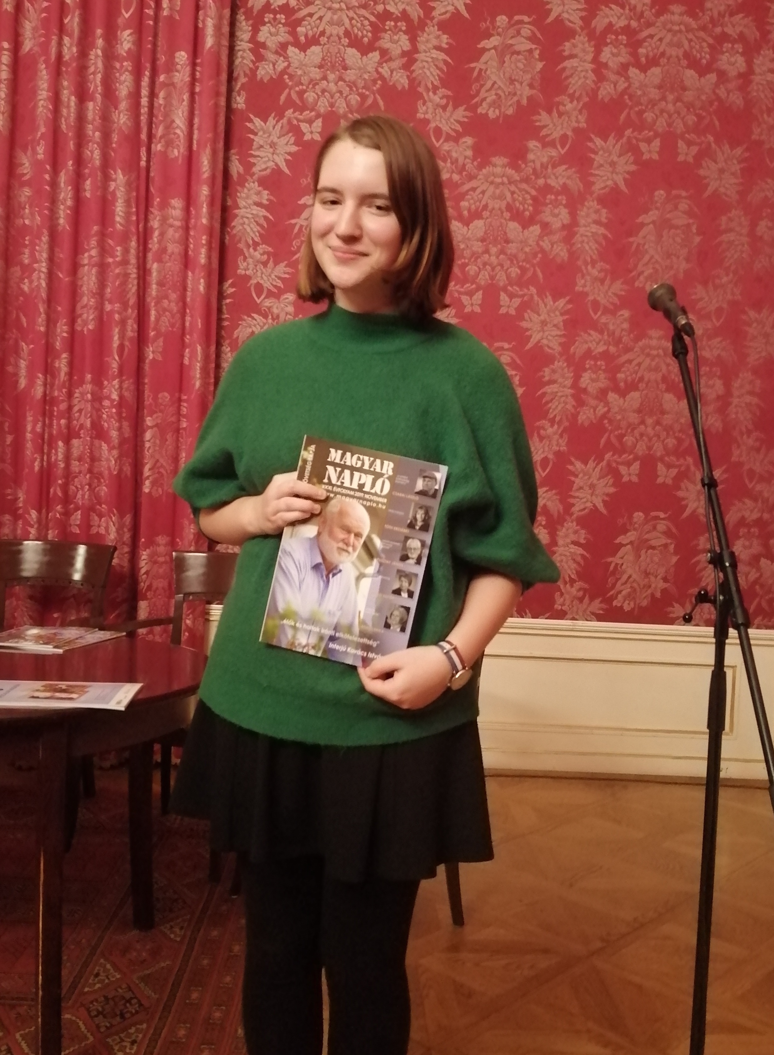 A mentorok Bodor Emese Réka 10. b osztályos tanulónk munkáját is érdemesnek tartották arra, hogy a Magyar Napló hasábjain megjelenjen. Emese az est népes közönsége előtt felolvasta művét és vallott alkotói törekvéseiről. A diákok lehetőséget kapnak arra, hogy a későbbiek folyamán is közöljék műveiket és a táborok résztvevőiként továbbfejleszthessék tehetségüket.