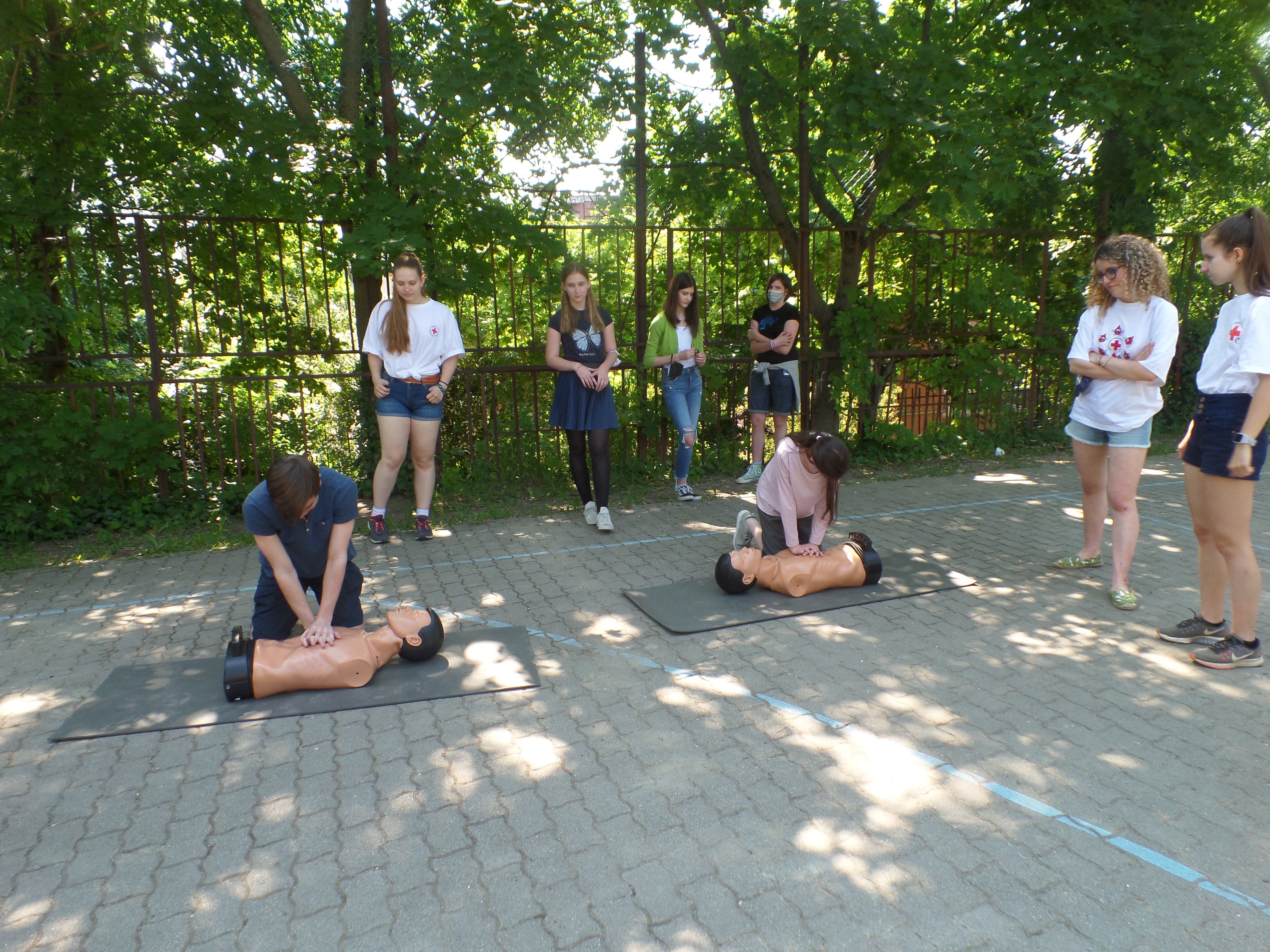 A Magyar Vöröskereszt Kovács Dávid irányításával gimnazista tanulóink kortárs oktatóként történő bevonásával interaktív, sok játékos elemet tartalmazó elsősegélynyújtási ismereteket tanított és újraélesztés oktatást végzett.