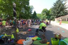 A gyerekek nagy örömére a NEO Magyar Segítőkutya Egyesület tartott remek bemutatót, mozgássérült, látássérült, hallássérült embereket segítő, illetve terápiás kutyák varázsolták el a nézőközönséget. A Noé Állatmenhely is kutyákkal érkezett, őket simogatni is lehetett, közben pedig a felelős állattartásról szerezhettek információkat a résztvevők.