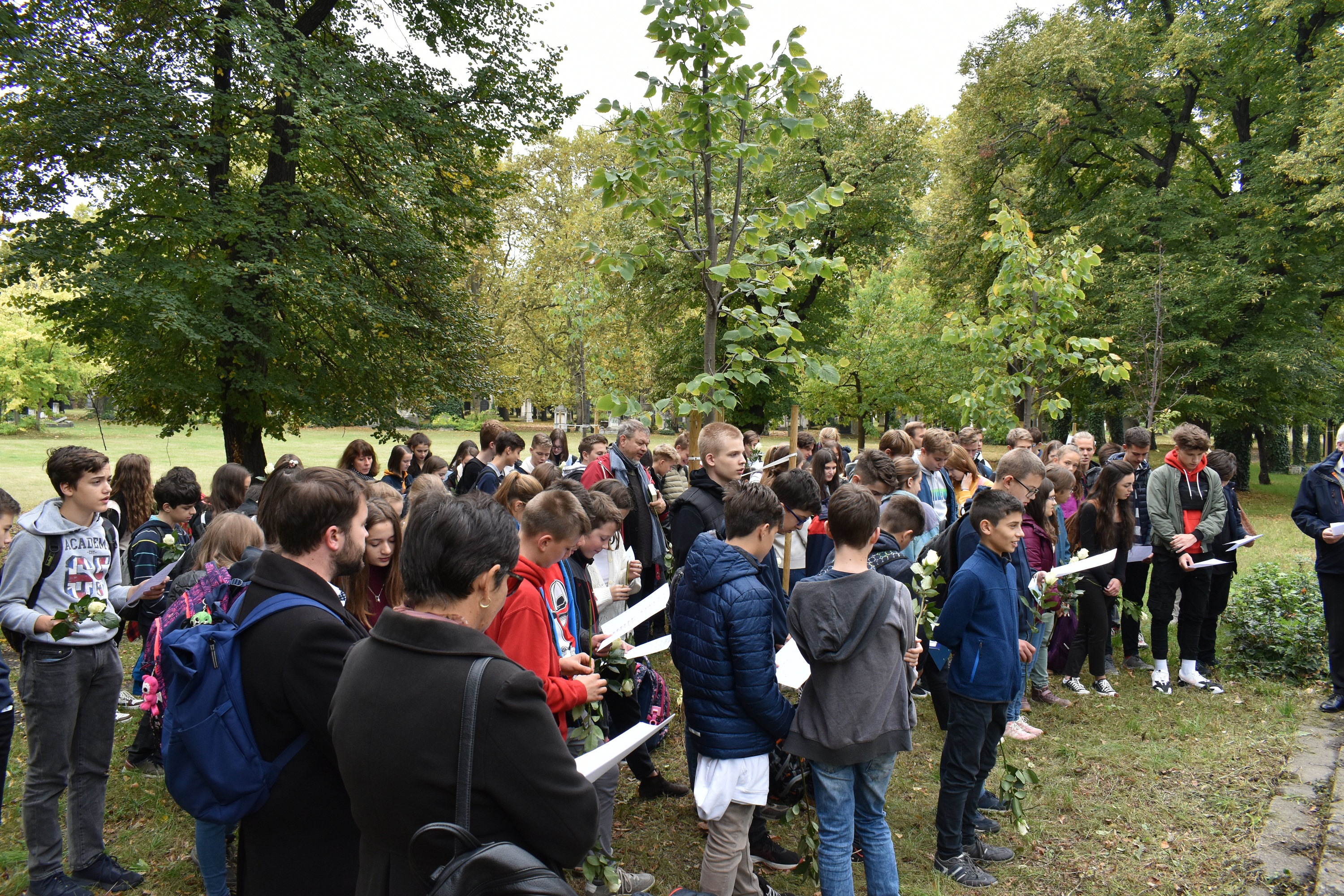 Október 11-én, hétfőn, régi hagyományainkhoz híven, az új osztályok - osztályfőnökük és helyettesük kíséretében - ellátogattak az iskola két alapítójának, Baár Jánosnak és Madas Károlynak sírjához a Fiumei úti Nemzeti Sírkertbe. A síroknál Tombor László igazgató úr felidézte emlékezetüket, kilencedik osztályos diákjaink pedig mindkét alapító életrajzát ismertették, valamint egy-egy Nemes Nagy Ágnes- és Reményik Sándor-vers is elhangzott. A zsoltárénekléseket követően Kutasy Zsolt mondta el igei gondolatait a betelt, teljes életről. Meghitt, békességes hangulatban emlékeztünk, méltóan az elődökhöz.
