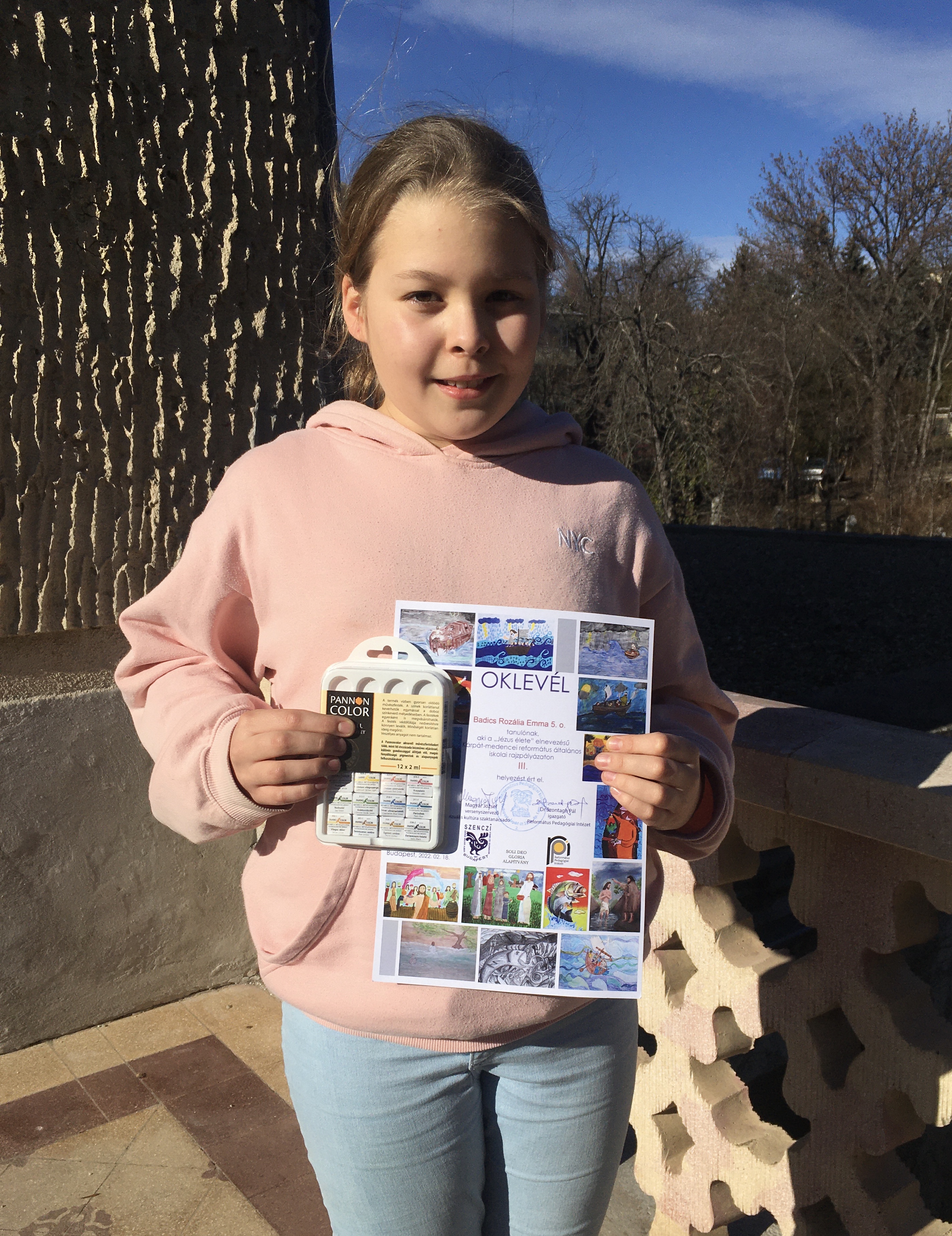 A Szenczi Molnár Albert Református Általános Iskola és a Református Pedagógiai Intézet az idén is megrendezte hagyományos rajzversenyét, immár hetedik alkalommal, melyen a Kárpát-medencei református iskolákban tanuló, alsó és felső tagozatos diákok vehettek rész. A pályázó 75 iskola közül 18 határon túli. 947 alkotás közül 34 alkotó munkája került díjazásra. BADICS ROZÁLIA EMMA ötödik osztályos tanuló III. helyezést ért el ’A vihar lecsendesítése’ alkotásával.