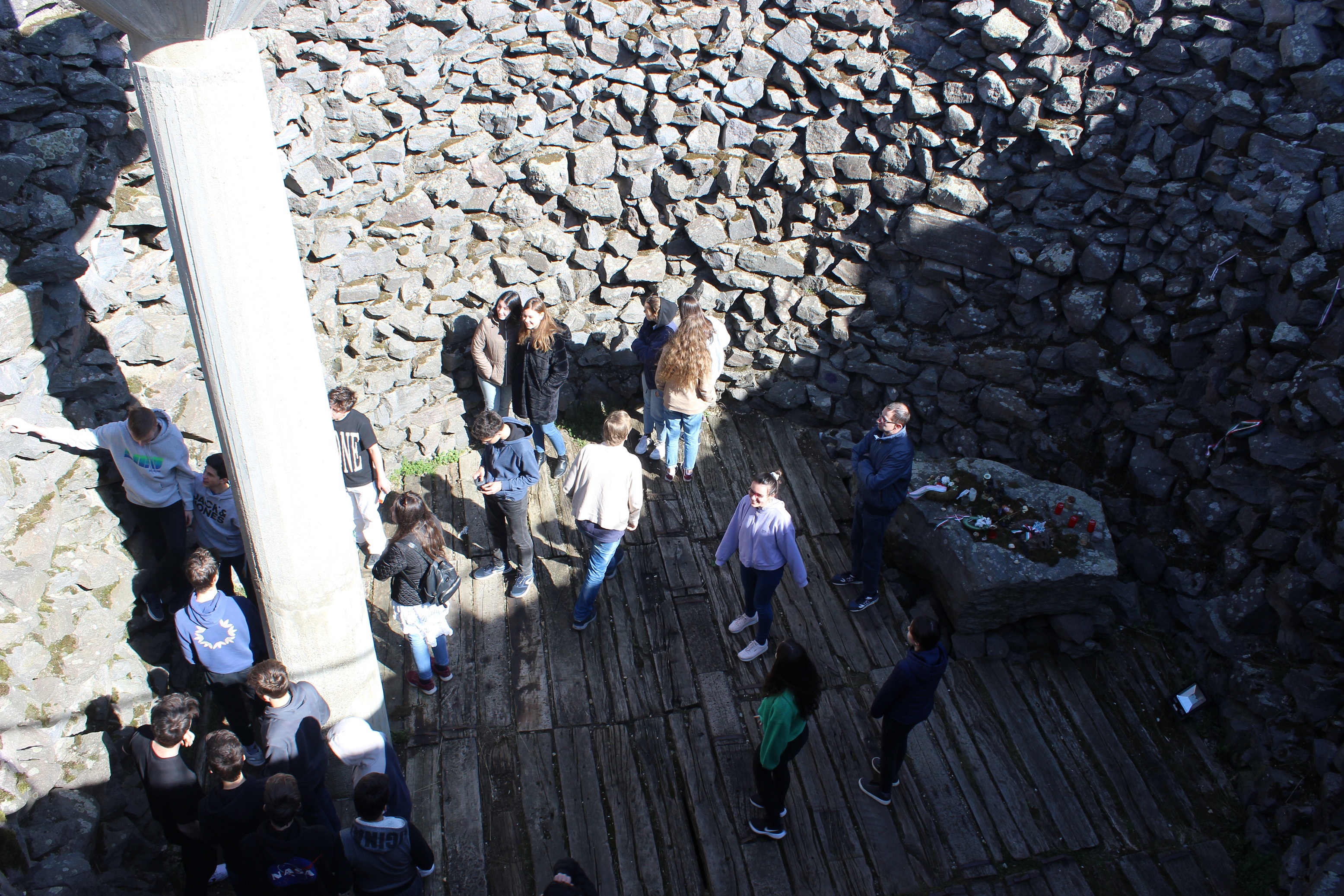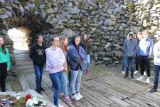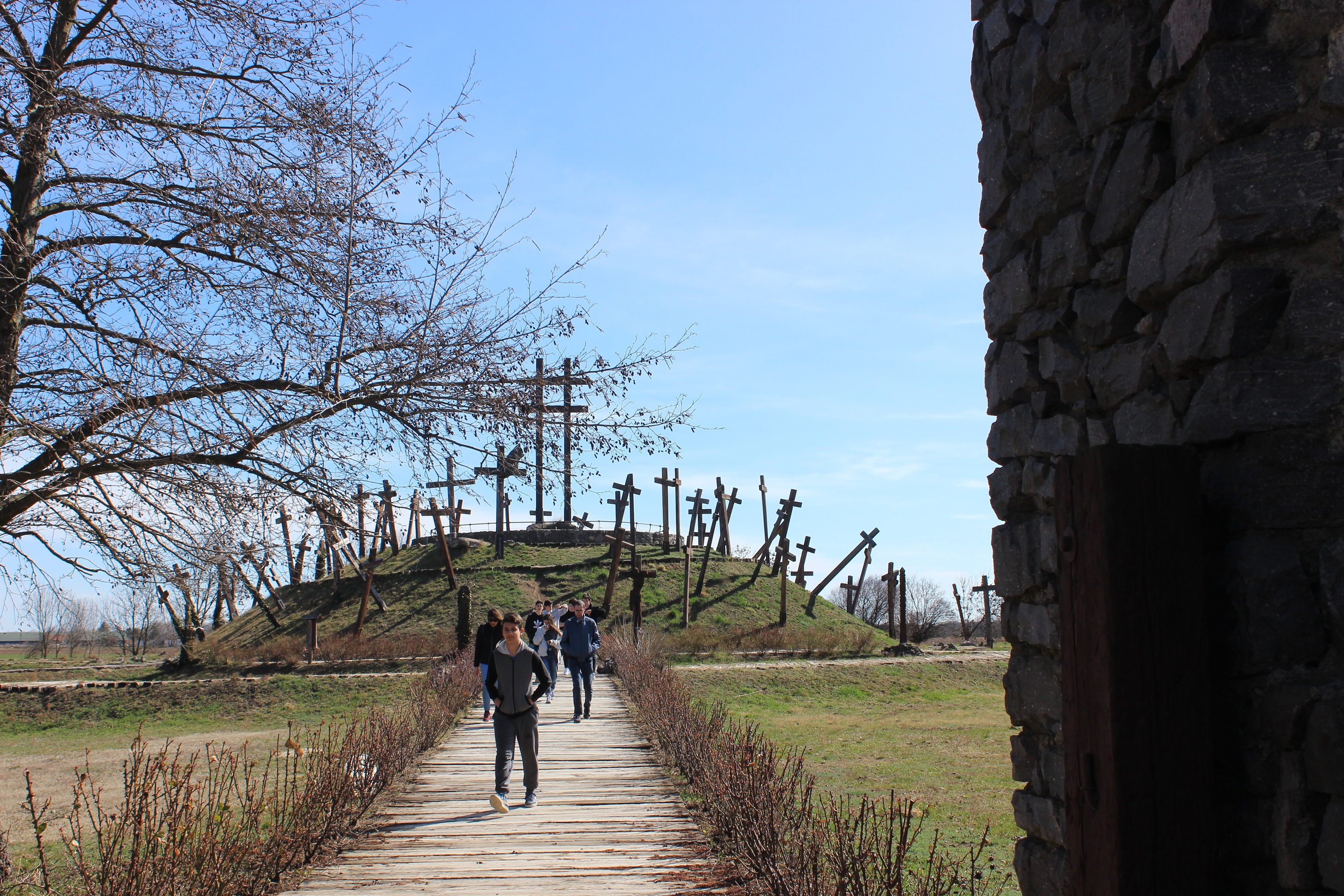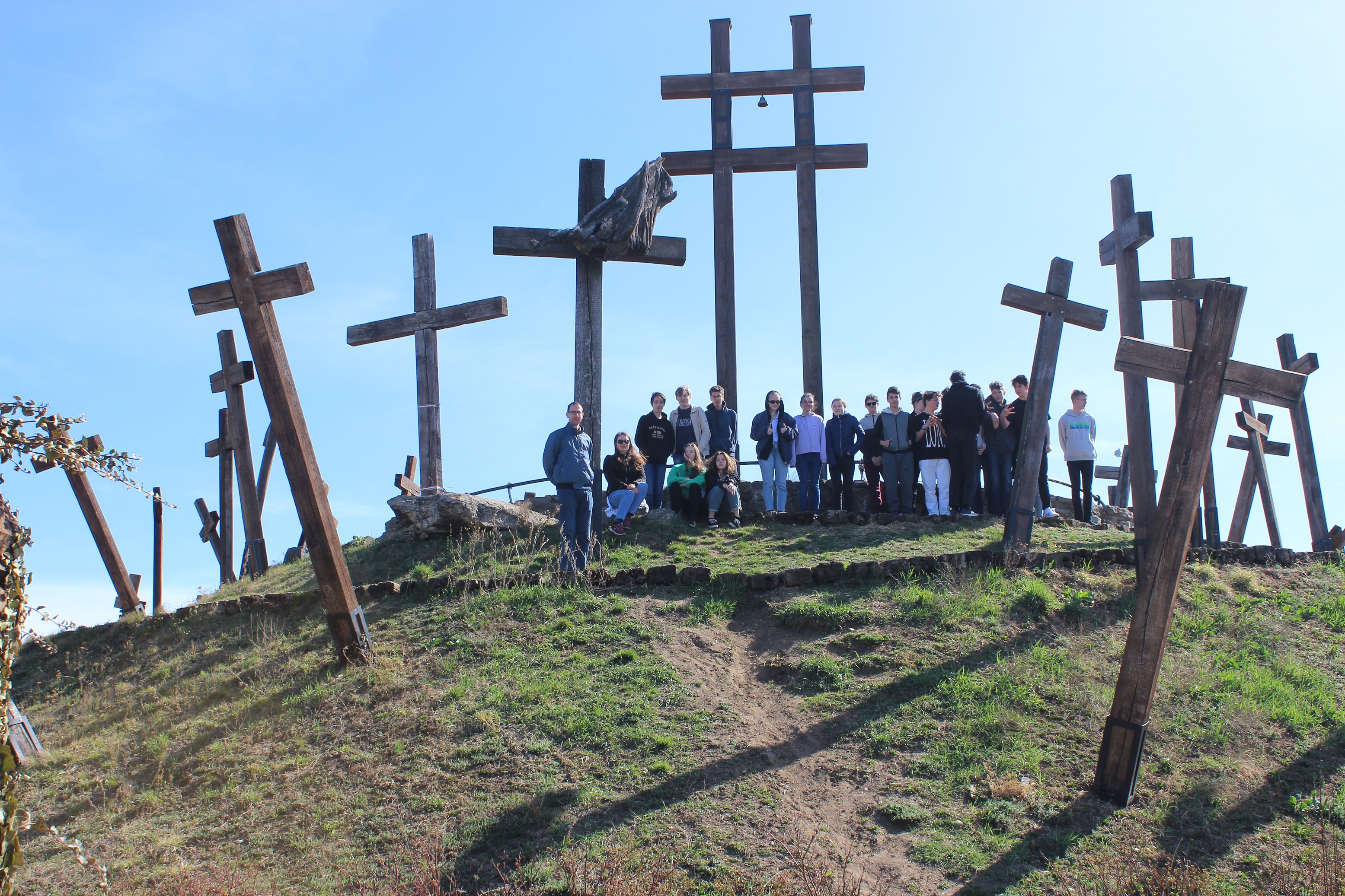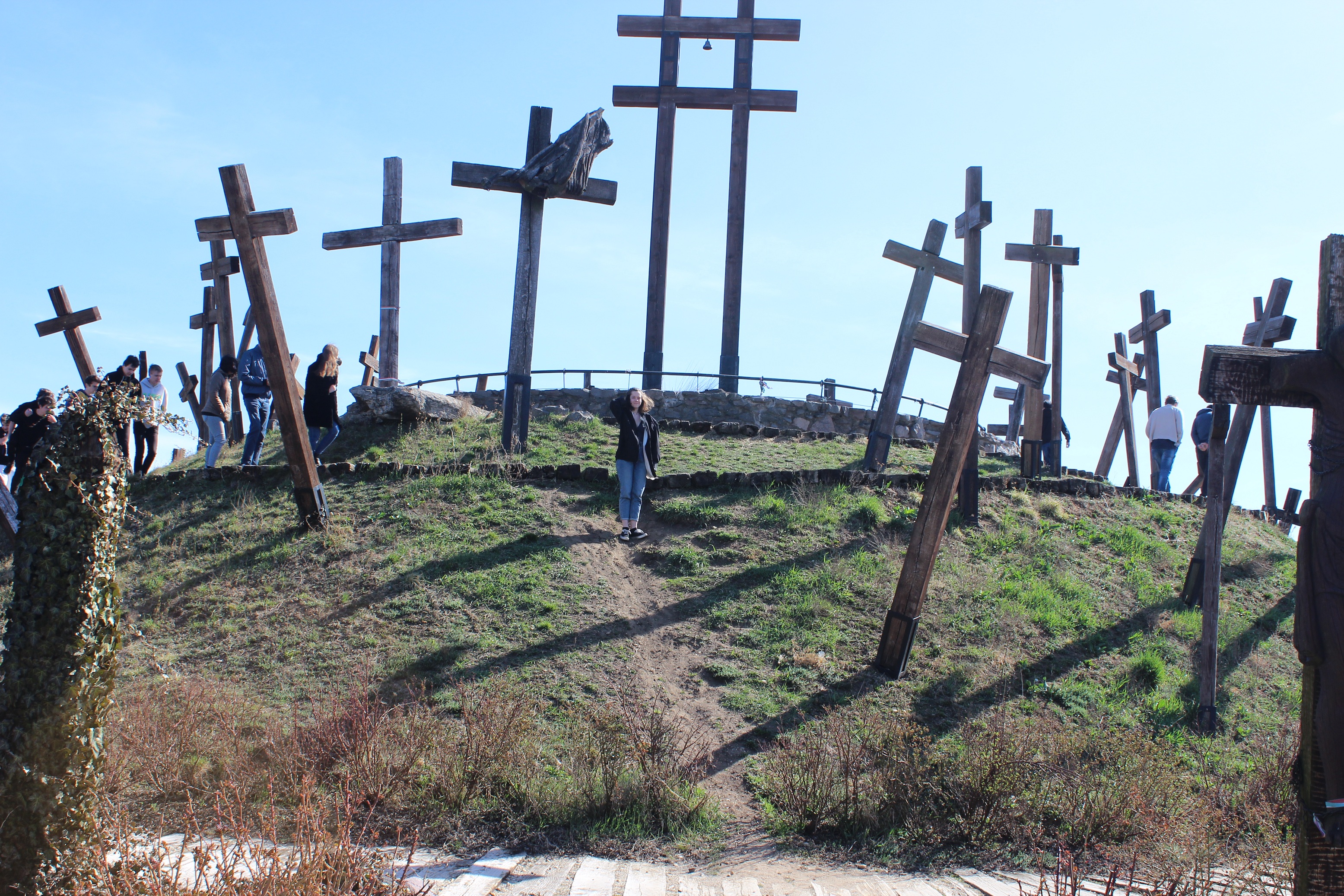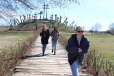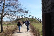 Az első úti célunk a Muhi csata emlékhelye volt, nem messze az M3-as autópályától. Az 1241. áprilisi 11-i éjszaka eseményeit röviden felelevenítettük, majd a tatárjárás döntő csatájának helyszínén megnéztük a hősi halottakra emlékeztető kereszteket, a csata helyszínét is próbáltuk behatárolni az emlékmű tetejéről.