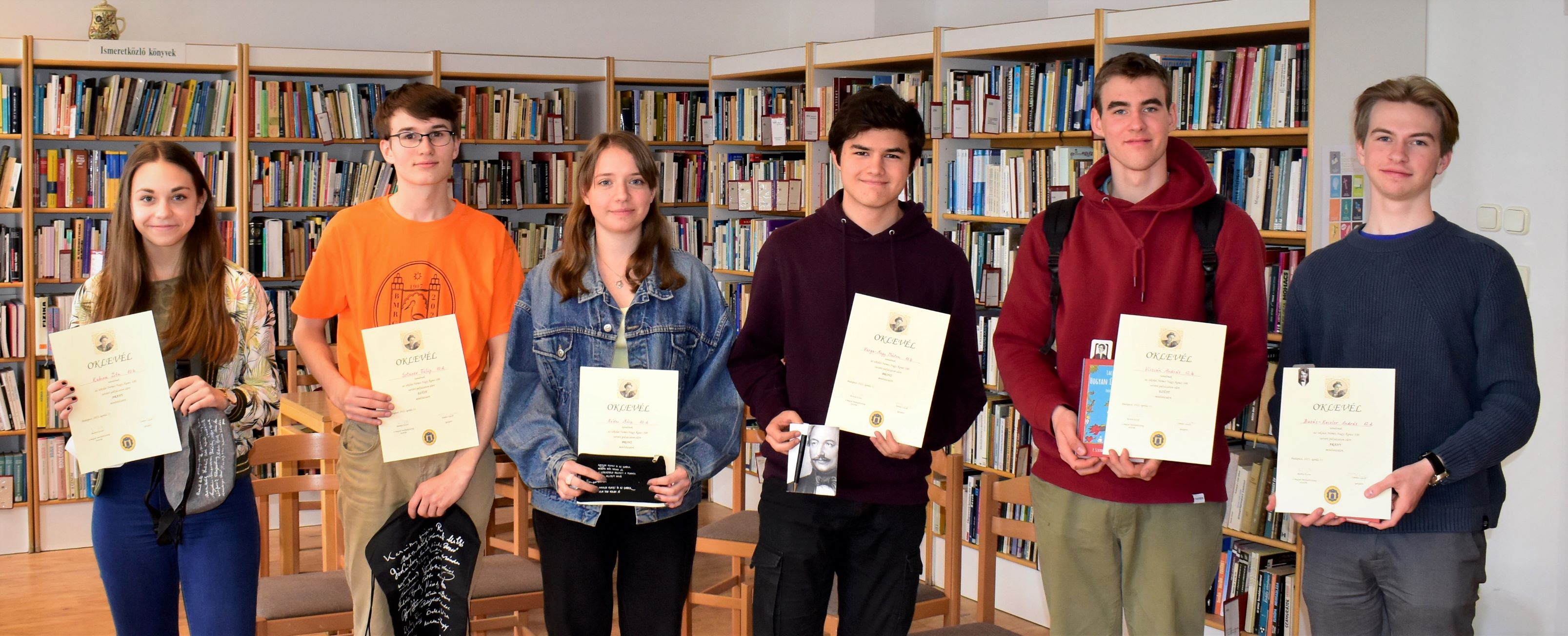 A díjazott tanulók a következők: arany: Buzás-Kaizler András (12.d) és Kubina Zita (10.b), ezüst: Sztanev Fülöp (10.d) és Viczián András (12.b), bronz: Rédei Nóra (10.d) és Varga-Nagy Márton (11.b)