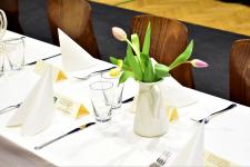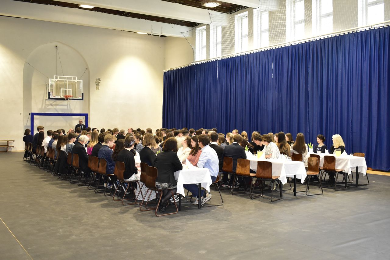 Iskolánk szép hagyománya, hogy a ballagás előtt végzőseink és tanáraik egy közös ebéden vesznek részt. A Covid az elmúlt két évben elsöpörte e bensőséges alkalmat. Most ismét lehetőség nyílott a tizenkettedikesek köszöntésére, az emlékek felidézésére. Ezután már jöhet a ballagás!