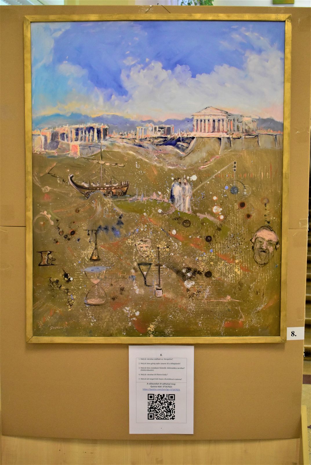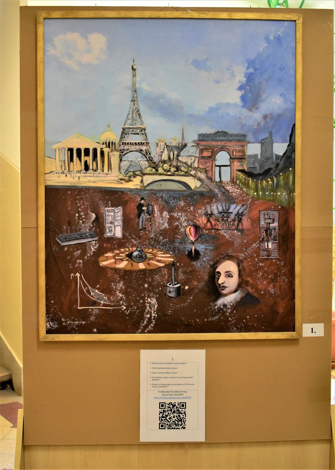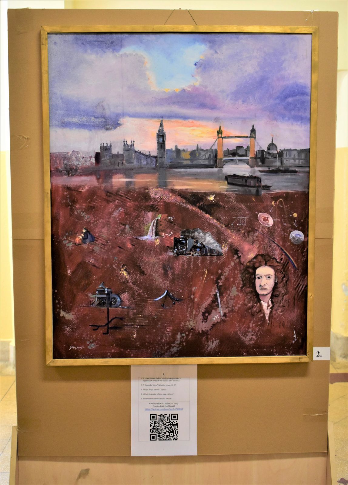 Stonawski Tamás vizuális- és környezetkultúra, fizika-matematika tanár festményei önmagukban is élményt jelentenek, de egyben lehetőséget adnak ismeretek szerzésére és játékra. A festményekhez kapcsolódó kérdések megválaszolása a természettudomány nagy felfedezéseibe is elkalauzol. Az aulában kiállított anyagot diákjaink barangolták be.
