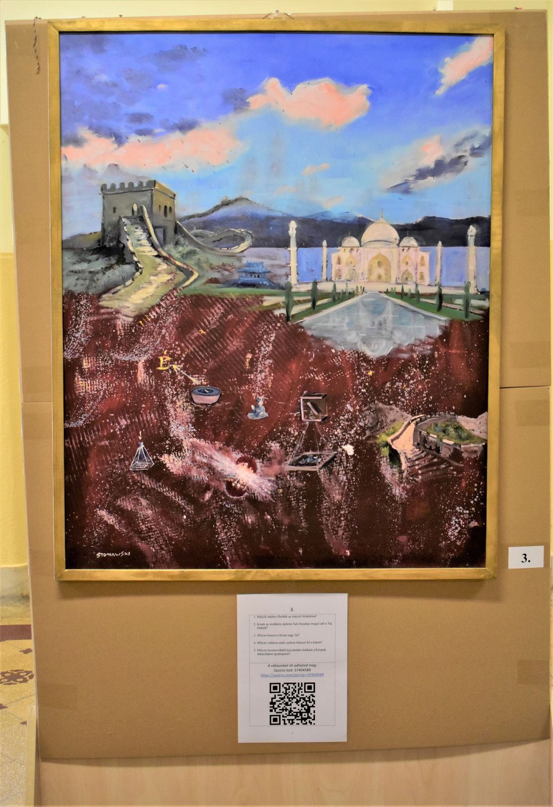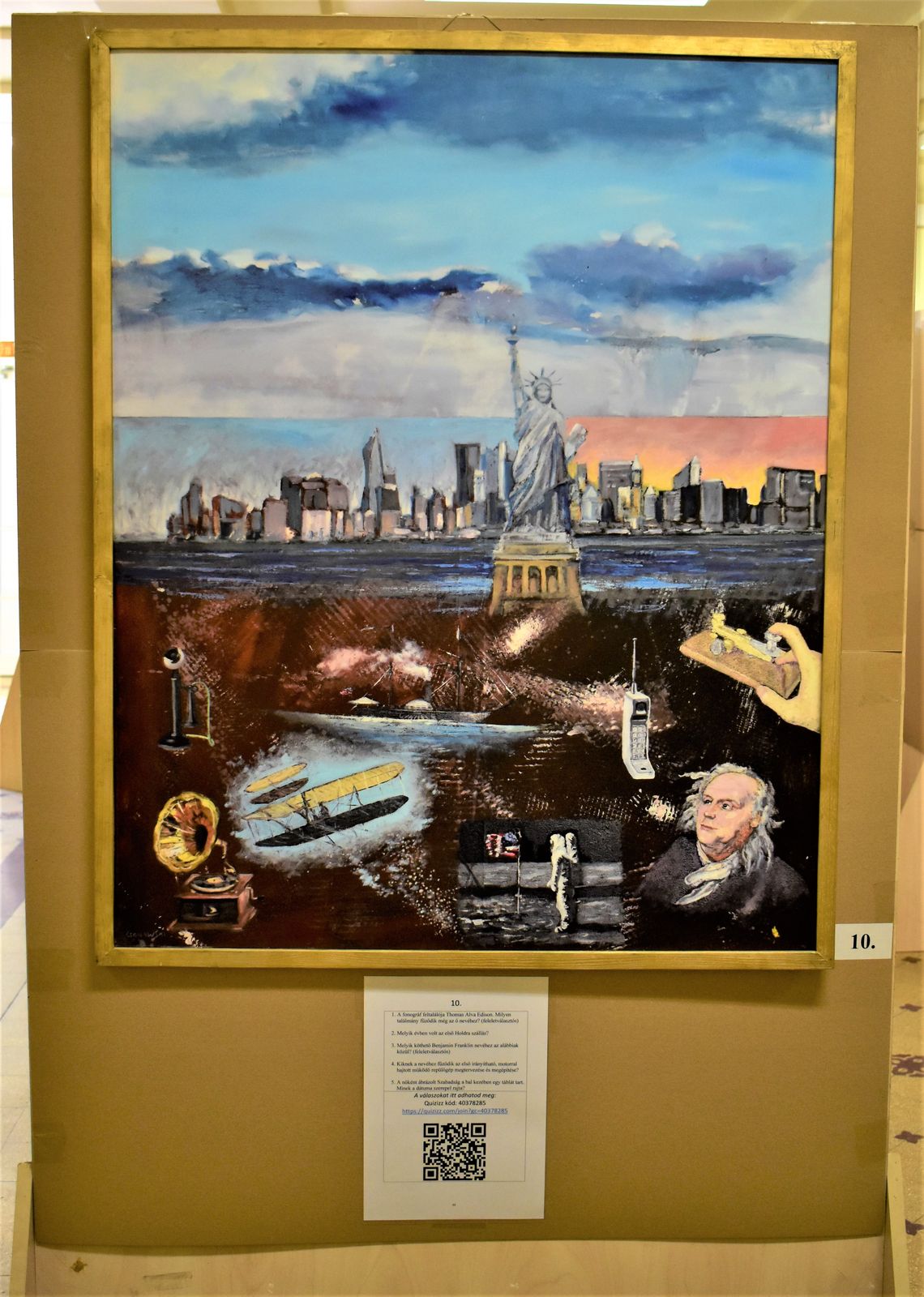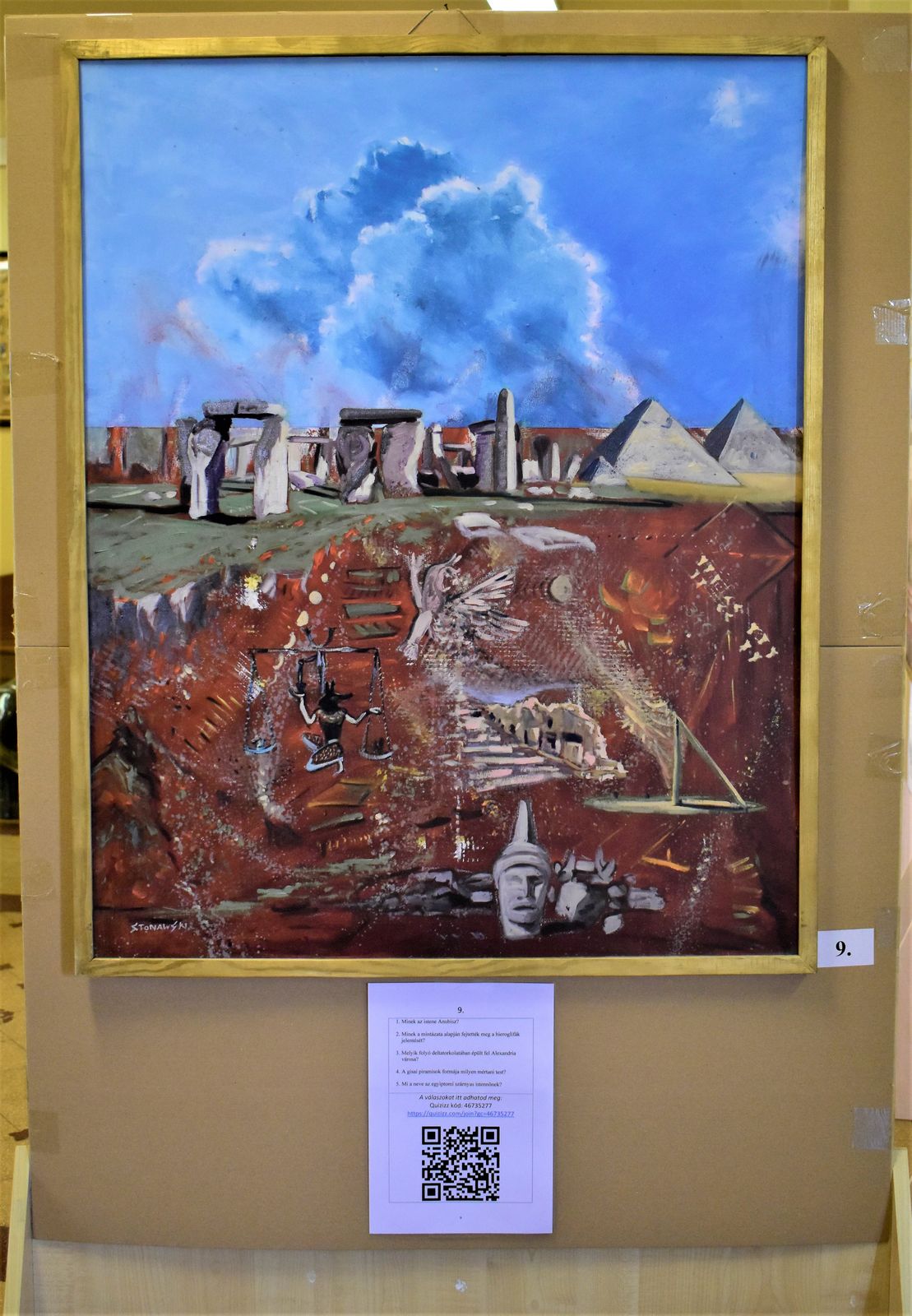 Stonawski Tamás vizuális- és környezetkultúra, fizika-matematika tanár festményei önmagukban is élményt jelentenek, de egyben lehetőséget adnak ismeretek szerzésére és játékra. A festményekhez kapcsolódó kérdések megválaszolása a természettudomány nagy felfedezéseibe is elkalauzol. Az aulában kiállított anyagot diákjaink barangolták be.