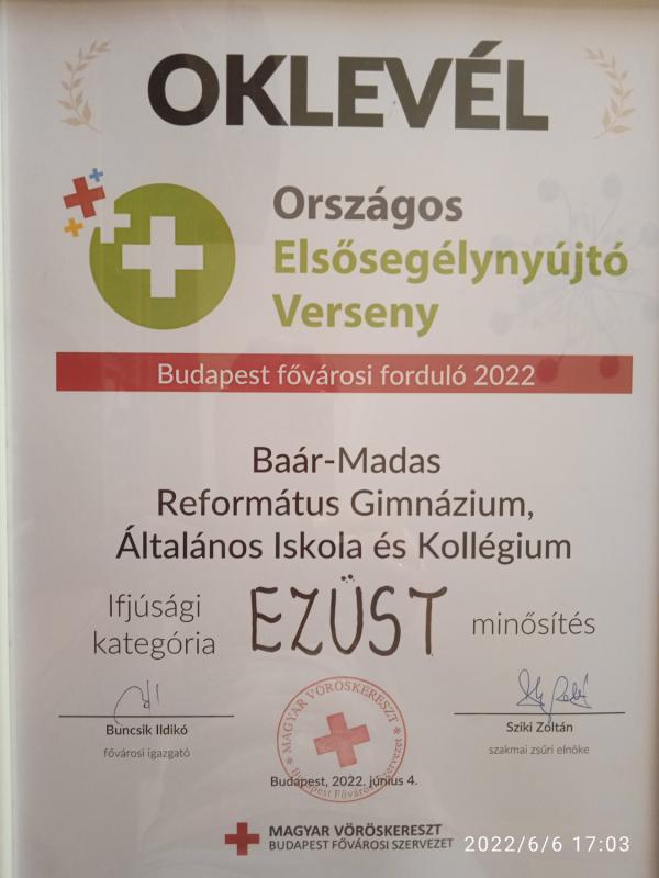 oklevél - fővárosi forduló II. helyezés