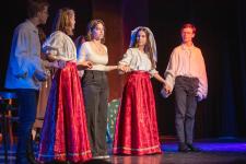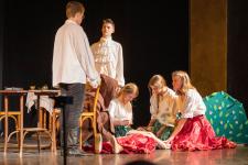 A 8. b magyaros csoportja már februárban megkezdte az előkészületeket. A darabot maguk választották, és ők maguk adaptálták a csoport összetételére. A próbák nagyon jó hangulatban teltek. A nehéz és hosszú szöveg nem fogott ki rajtuk, gyorsan megtanulták beszélni a darab nyelvét. A tanév utolsó két hónapja Shakespeare-é volt, hiszen a Romeo és Júlia tananyagként összetalálkozott a Sok hűhó semmiért című – általunk nagyon megszeretett – művel. A főszereplők parádésan hozták a karaktereket.