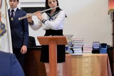 Az istentisztelet után Gurzó Gyöngyi 11.c osztályos tanulónk fuvolajátékában gyönyörködhettünk, majd ezután Tombor László igazgató úr mondta el tanévzáró beszédét és adta át a különféle jutalmakat és díjakat.
