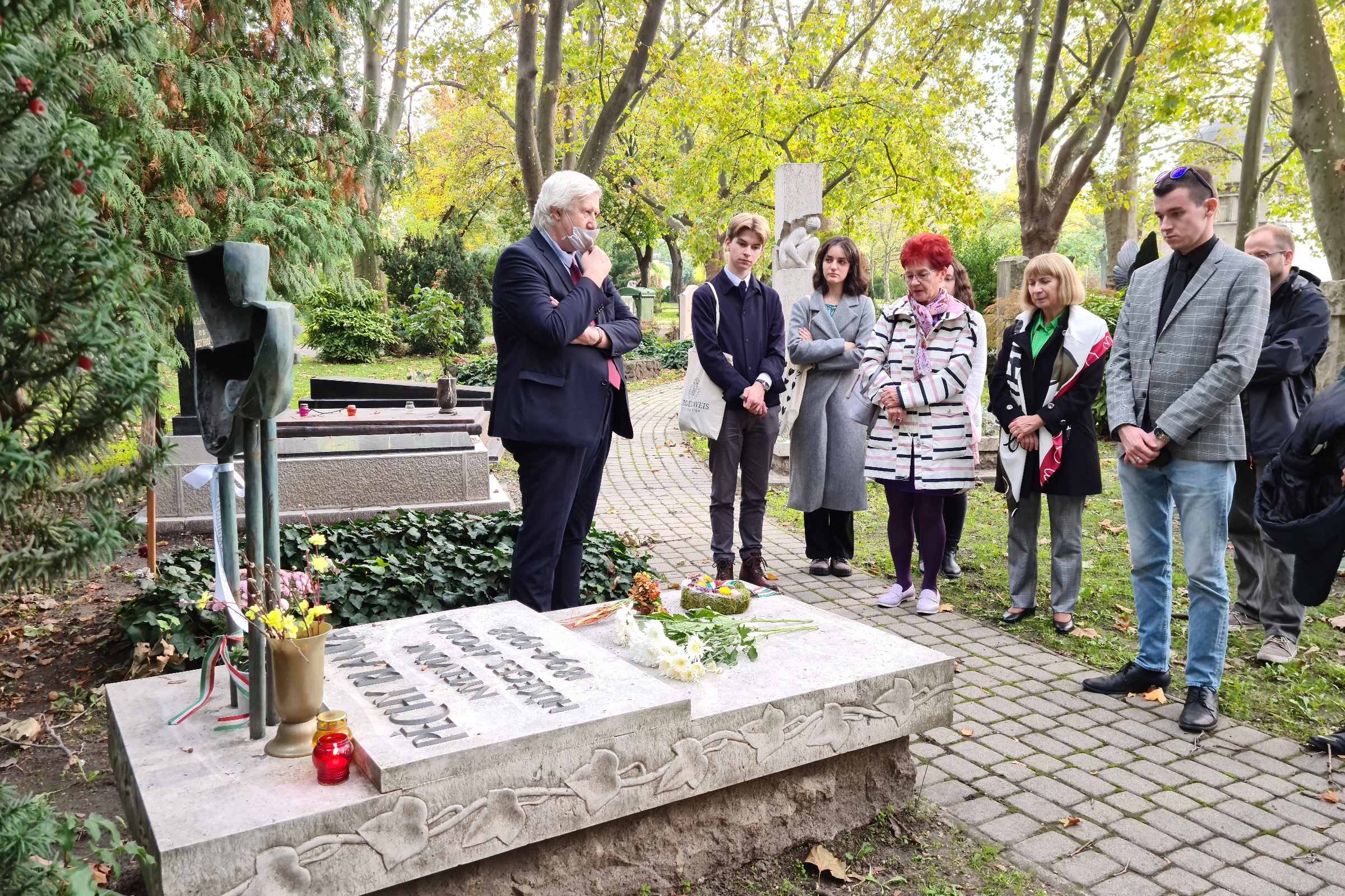 Elkészítettük a 2022/2023. tanév anyanyelvi naptárát, s a tanácskozás végén ellátogattunk a Fiumei úti sírkertbe a mozgalomalapító Péchy Blanka művésznő sírjához.