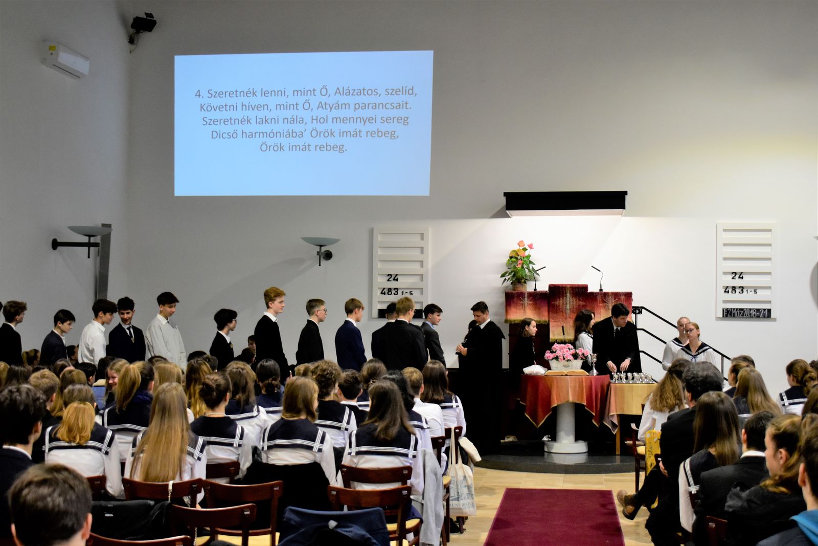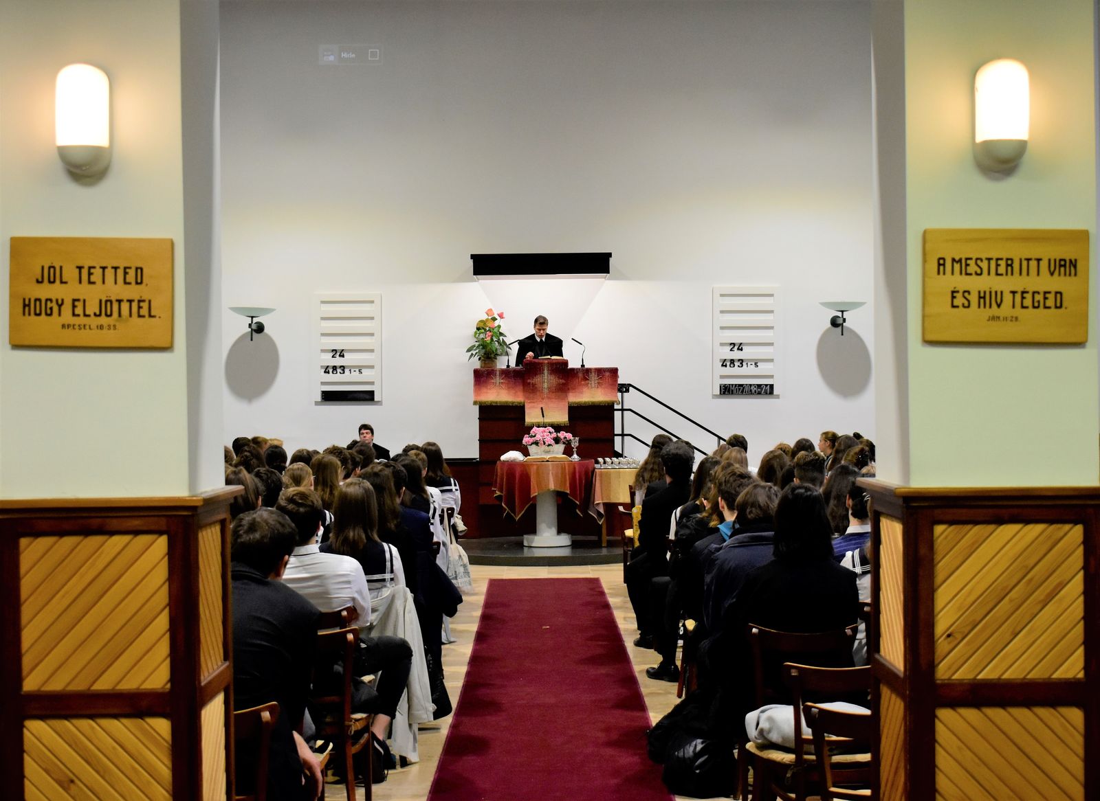 A reformáció csendesnapján a pasaréti templomban gyülekezett a gimnázium diáksága és a tanárok.