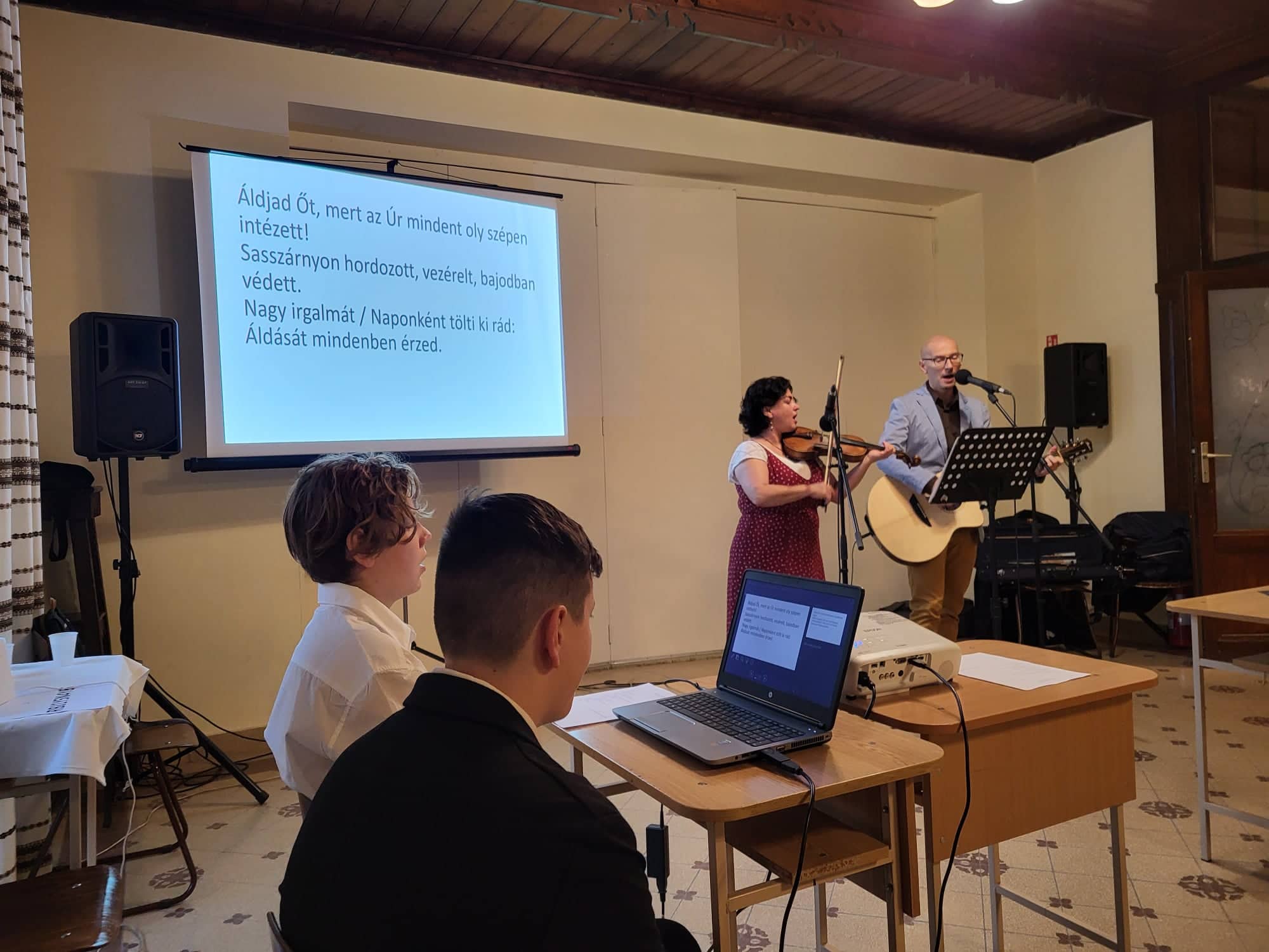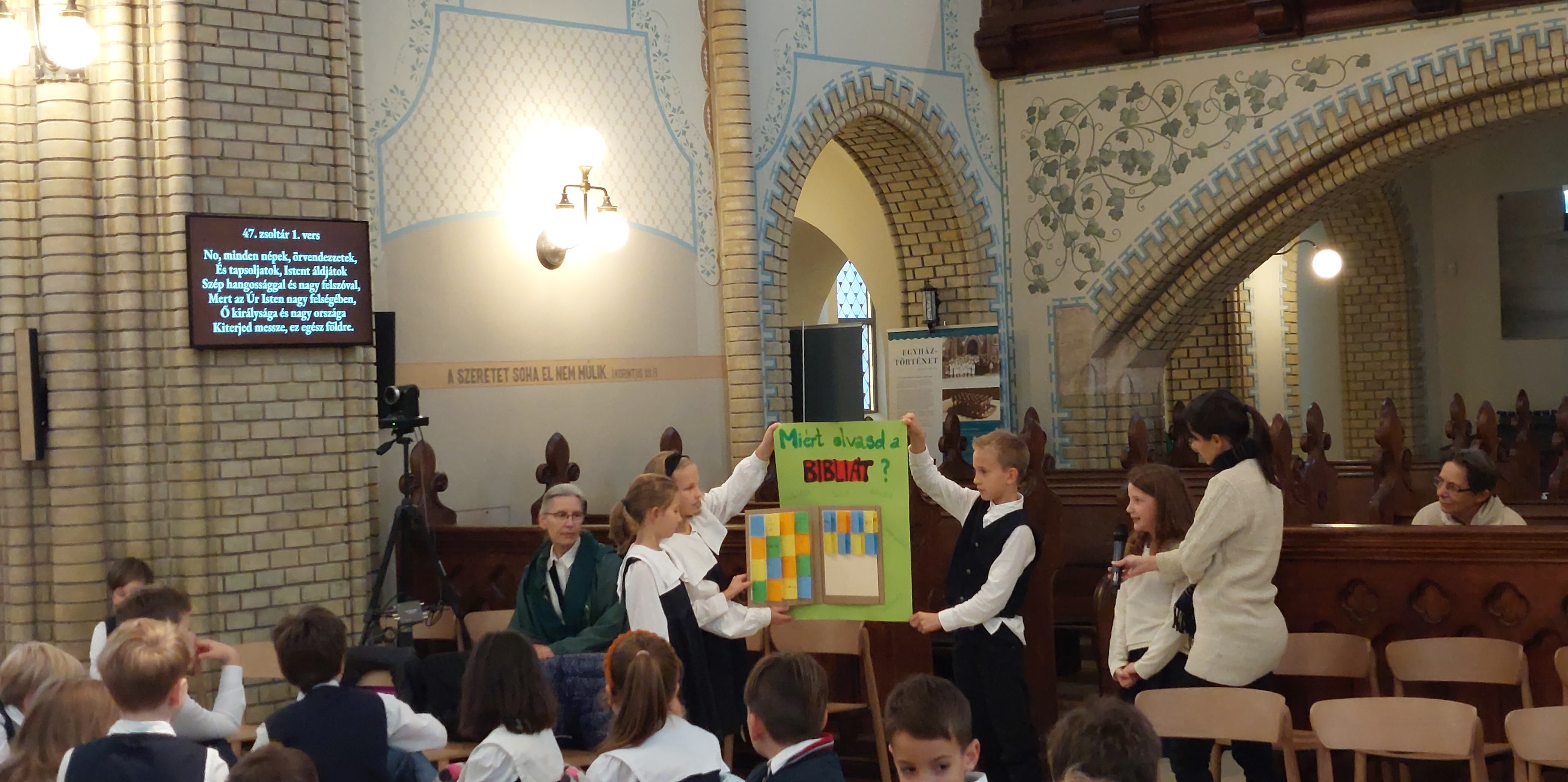 A felső tagozatosoknak Thoma László gazdagréti lelkipásztor tartott istentiszteletet, melyen az igehirdetés szolgálata mellett Draskóczy Lídiával közösen zenélve hívták Isten dicsőítésére a kamaszokat. A délelőtt folytatásaként teológus hallgatók vezetésével a Szentírás jobb megismerését szolgáló online kvízt (Kahootot) töltöttek ki az osztályok, majd igehelyes számháborún vettek részt.