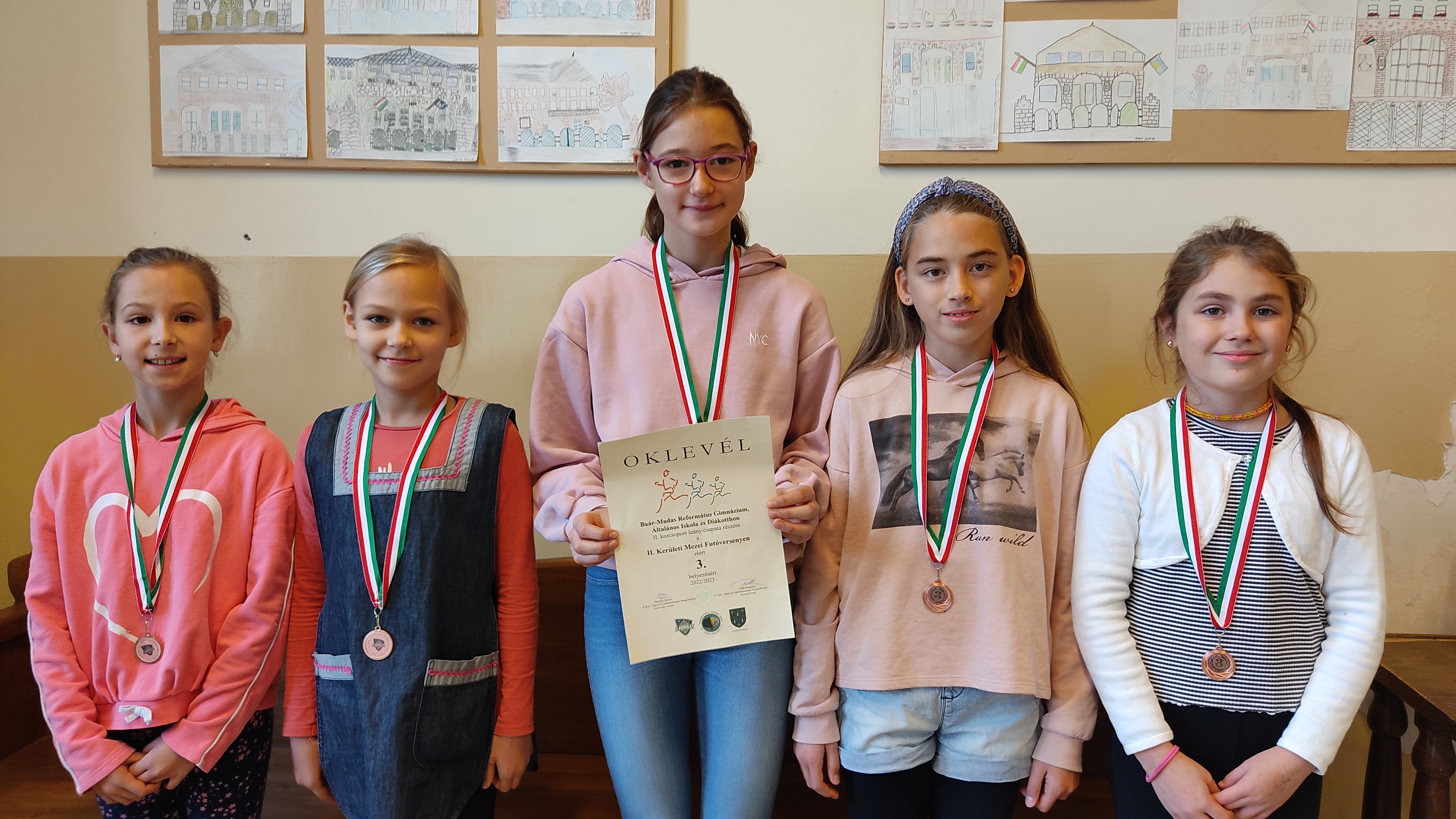 Alsó tagozatos diákjaink remekül szerepeltek a Diákolimpia – Mezei Futóverseny – II. kerületi iskolák bajnokságán. Lányok 1. korcsoport, csapatverseny II. helyezés (Cselovszky Sára, Komjáthy Gyöngyvér, Nagy Noémi, 3. o.: Tánczos Virág, Virágh Lilien 2. o.) és III. helyezés (Gottfried Léna, Illés Manga, Kára Eszter (4.a), Illés Manyi, Imreh Boróka(3.a). Egyéniben Cselovszky Sára III., Nagy Noémi és Illés Manyi IV. helyezés. A fiúk 1. korcsoportos csapatversenyében VI. helyen végeztek (Borkó Benedek, Horváth Ádám, Juhász Regő, Kára Kristóf (2. o.), Kálmán Benedek 1. o.), miként egyéniben Kálmán Benedek. A 2. korcsoportban a csapat ötödik lett (Juhász Kende, Matuz Vilmos (4.o.), Bittera Bolyk, Csontos Vejke, Prandler Benjamin (3. o.), ahogyan egyéniben Prandler Benjamin.
