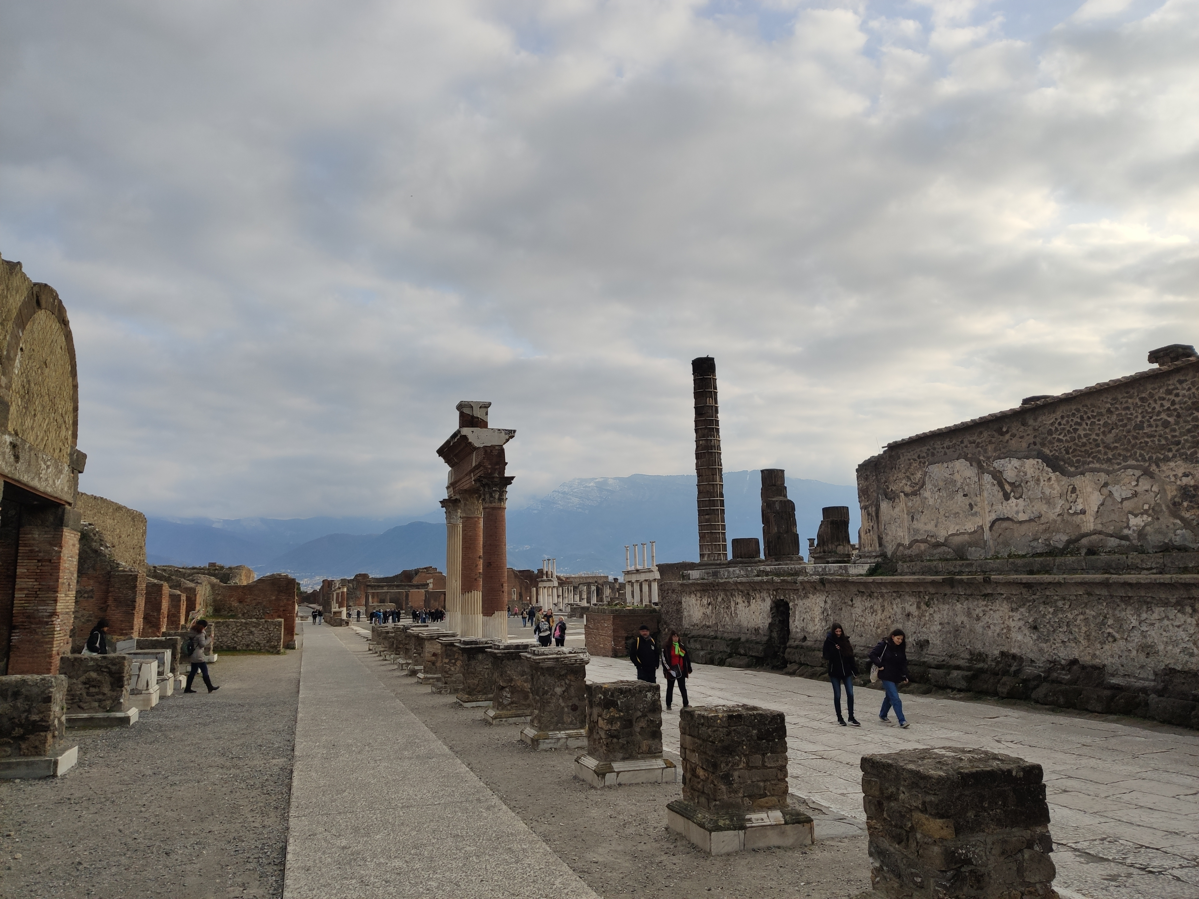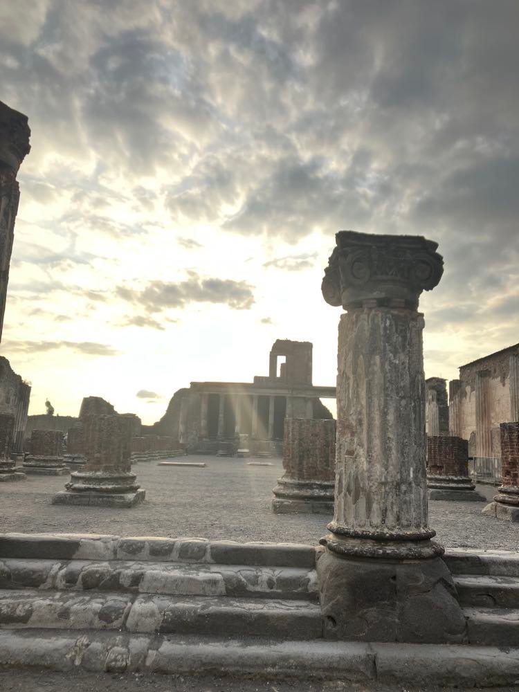 Az utunkat alapvetően az jellemezte, hogy legalább a dolgok fele nem úgy sült el, ahogy elterveztük (bár ezen Dél-Olaszországban ne lepődjön meg az ember), így egy sztrájk miatt rögtön a második napunkon látogattunk el a Vezúvra, majd Pompeiibe. Habár a Vezúvon az orrunk hegyéig is alig láttunk el, így is egyedülálló élmény volt egy szunnyadó vulkánon sétálni és érezni, hogy a talpunk alatt a föld nem szilárd. Számomra talán Pompeii volt a csúcs, hiszen az ókori romok, amiket a lemenő nap narancssárgára színezett, valami nagyon ősi és megfoghatatlan világba repítettek át minket.