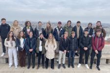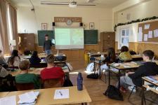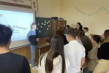 Az idegen nyelv tanulás szépsége, amikor ráébredünk, hogy nem csupán a tankönyv lapjain, vagy a képernyőn létezik a nyelv, hanem a megtanult szavak, kifejezések, szerkezetek az élő kommunikációvá alapjává válnak. Az elmúlt héten iskolánkban járt ERIK PYKA, németországi tanár, aki a német órákon válaszolt a minket izgató kérdésekre és beszélt a német kultúráról. Jó tapasztalat volt diákjaink számára, hogy kipróbálhatták nyelvtudásukat "terepen" is.