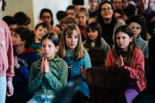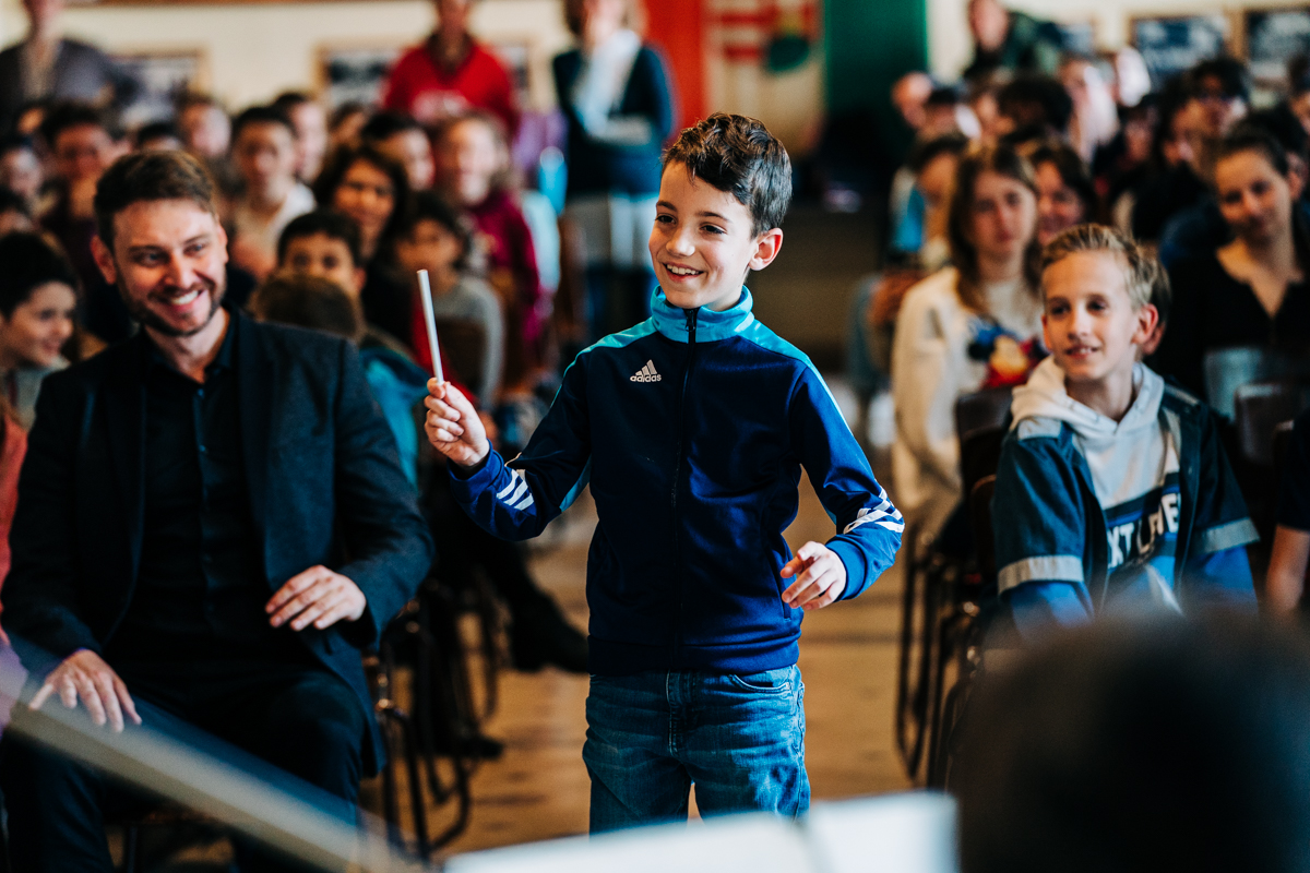 A program zárásaként általános iskolás kisdiák és gimnazista együtt énekelte Beethoven Örömódáját a zenekar kíséretével.