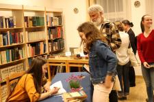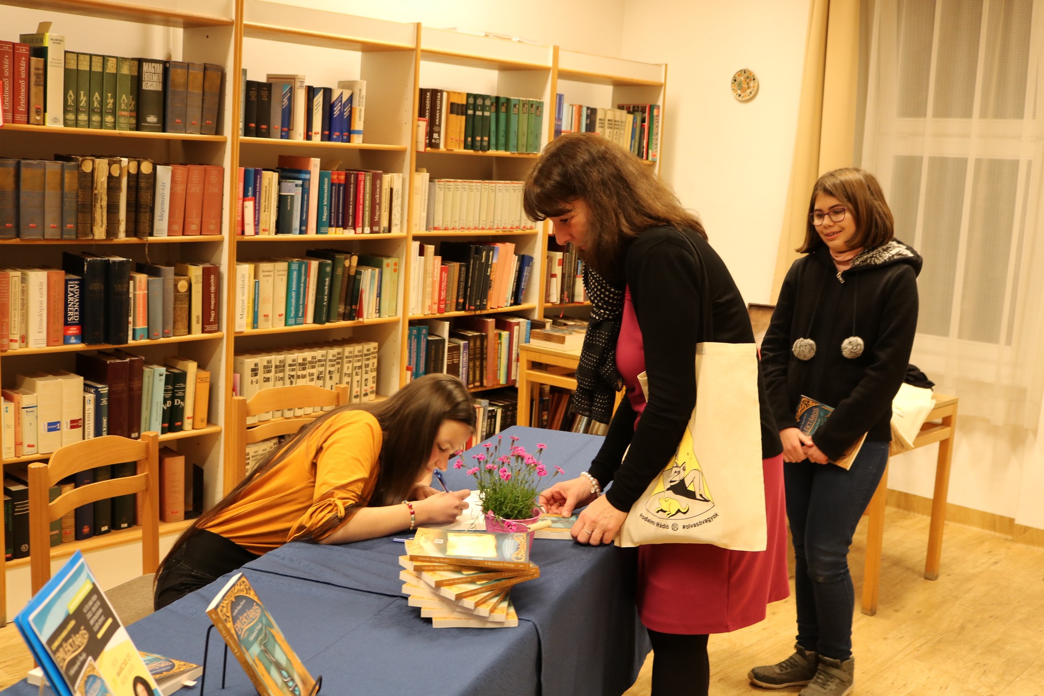 Nagy örömmel és büszkeséggel tudatjuk, hogy ismét egy írónővel gazdagodott a Baár-Madas Református Gimnázium diákjainak köre. Nemes Nagy Ágnes, Szenes Hanna, Bodor Réka Emese és Kubina Zita nyomdokain elindult a 10. c osztályos SCHNELLER HANGÁNK is. Március 21-én kedden este tartotta az Irodalmi Rádió Kiadó Hanga első könyvének a bemutatóját iskolánk könyvtárában. A könyv egy sorozat első kötete, melynek címe: EMLÉKTÁROS – A KÖNNYEK ŐRZŐJE. Igazgató úr köszöntője után, Zsoldos Árpád, a kiadó vezetője beszélgetett Hangával ifjúsági regényéről, majd Zsoldos Adrienn olvasott fel részleteket a műből, mely a Líra könyvesboltokban és a Könyvtárellátó révén megvásárolható. Az ünnepi könyvhéten az Irodalmi Rádió standjánál Hanga dedikálja is majd a regényét, mellyel 2022-ben elnyerte az ÉV DIÁKÍRÓJA címet. Isten áldását kérjük Hanga irodalmi pályafutásához és sok szeretettel gratulálunk neki és szüleinek ehhez a nagyszerű eseményhez. Jó szívvel ajánljuk Hanga könyvét az ifjú olvasóknak! Az osztálytársak közül már többen olvasták a második és harmadik kötet munkapéldányát is, melyeket mi is kíváncsian várunk!