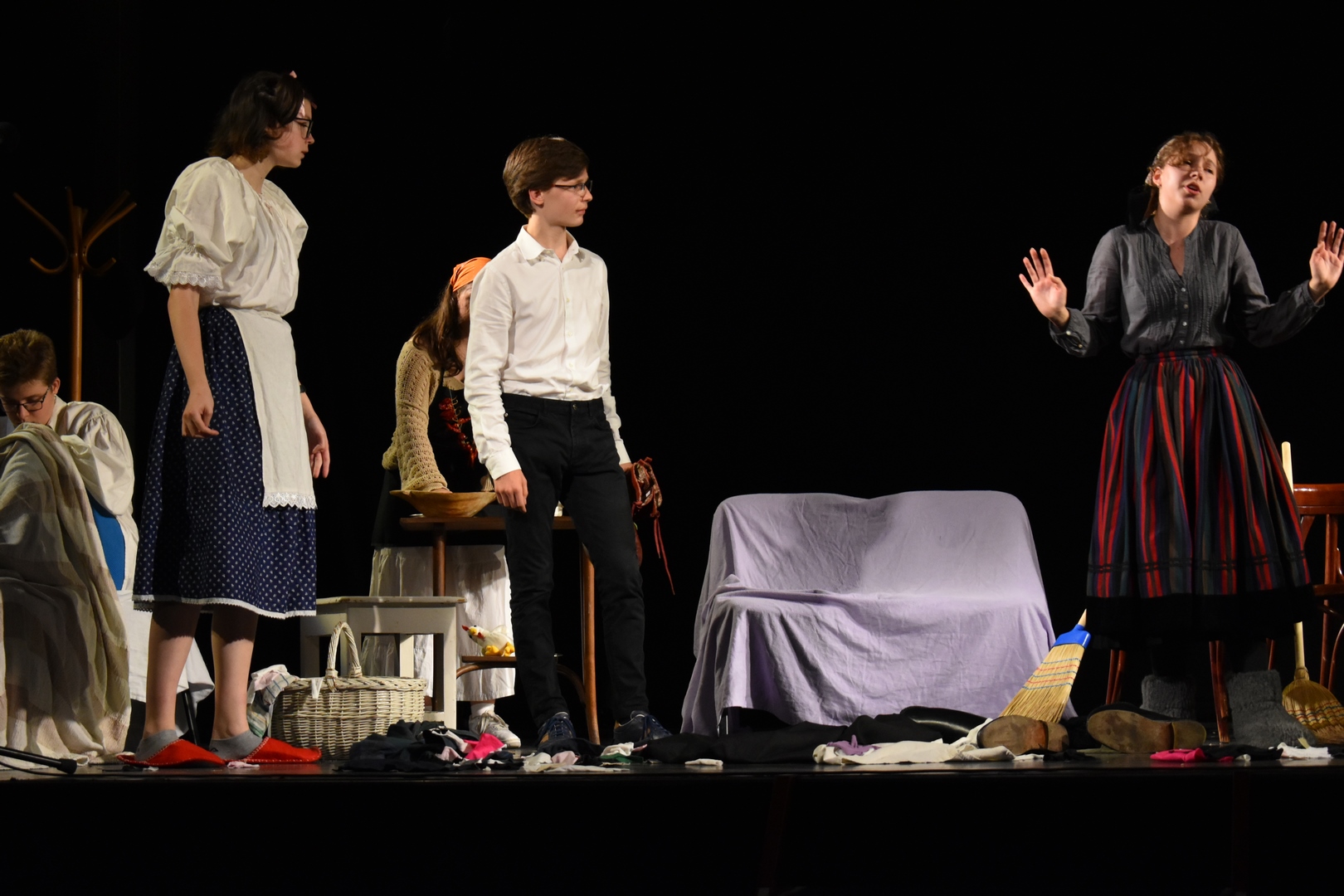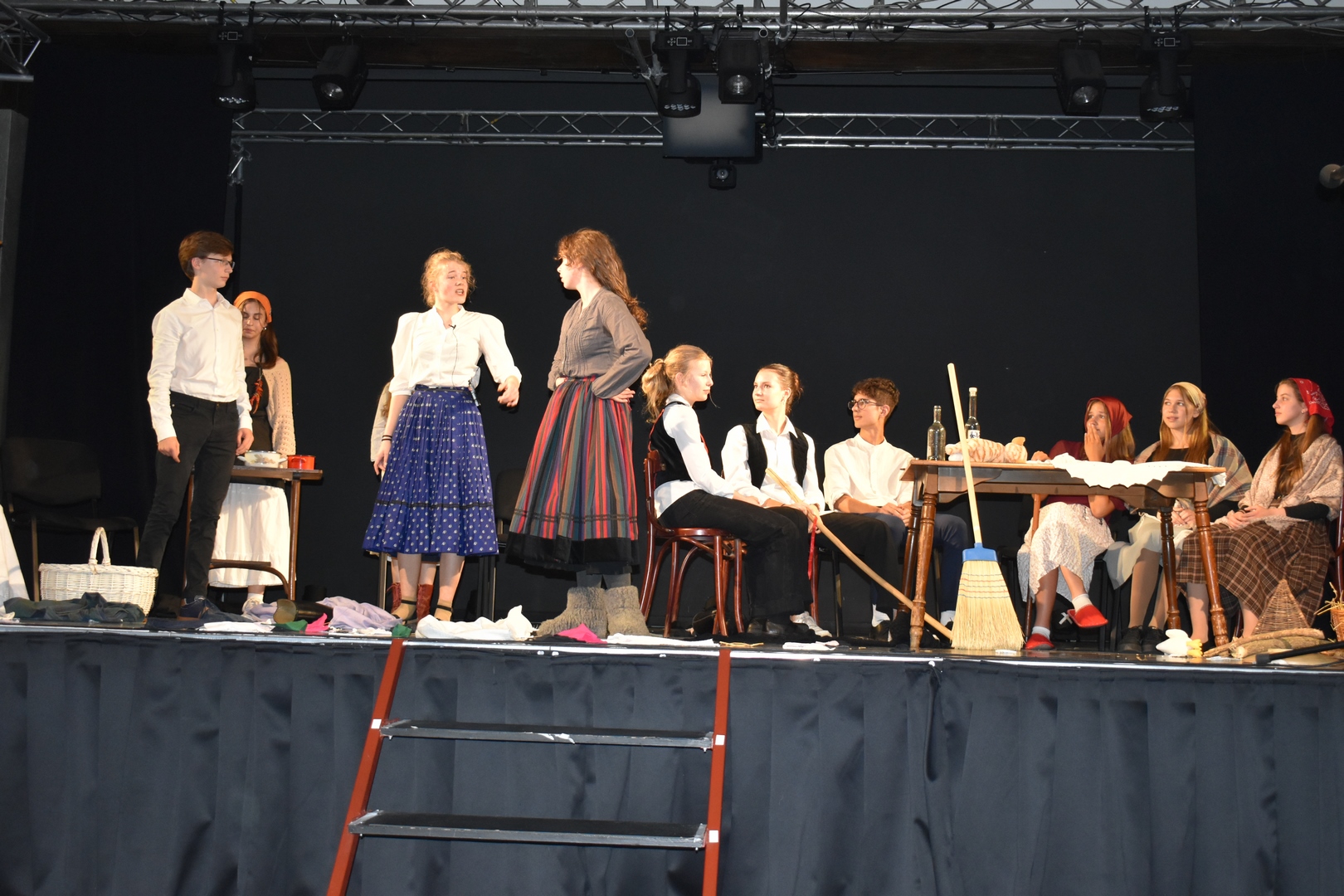 A 9. B-sek egy ősi parasztkomédiával rukkoltak elő, amelyet Illyés Gyula leleményes fokozással, ízes magyar színpadi dialógusokkal dolgozott át A tűvé tevők címmel.