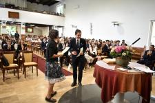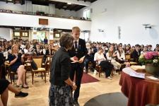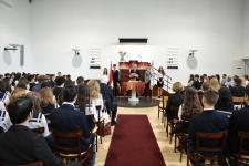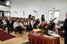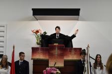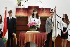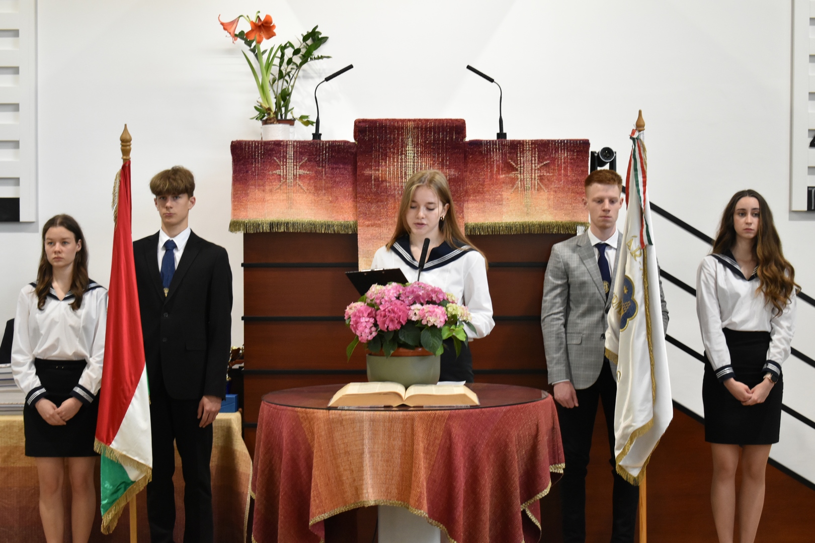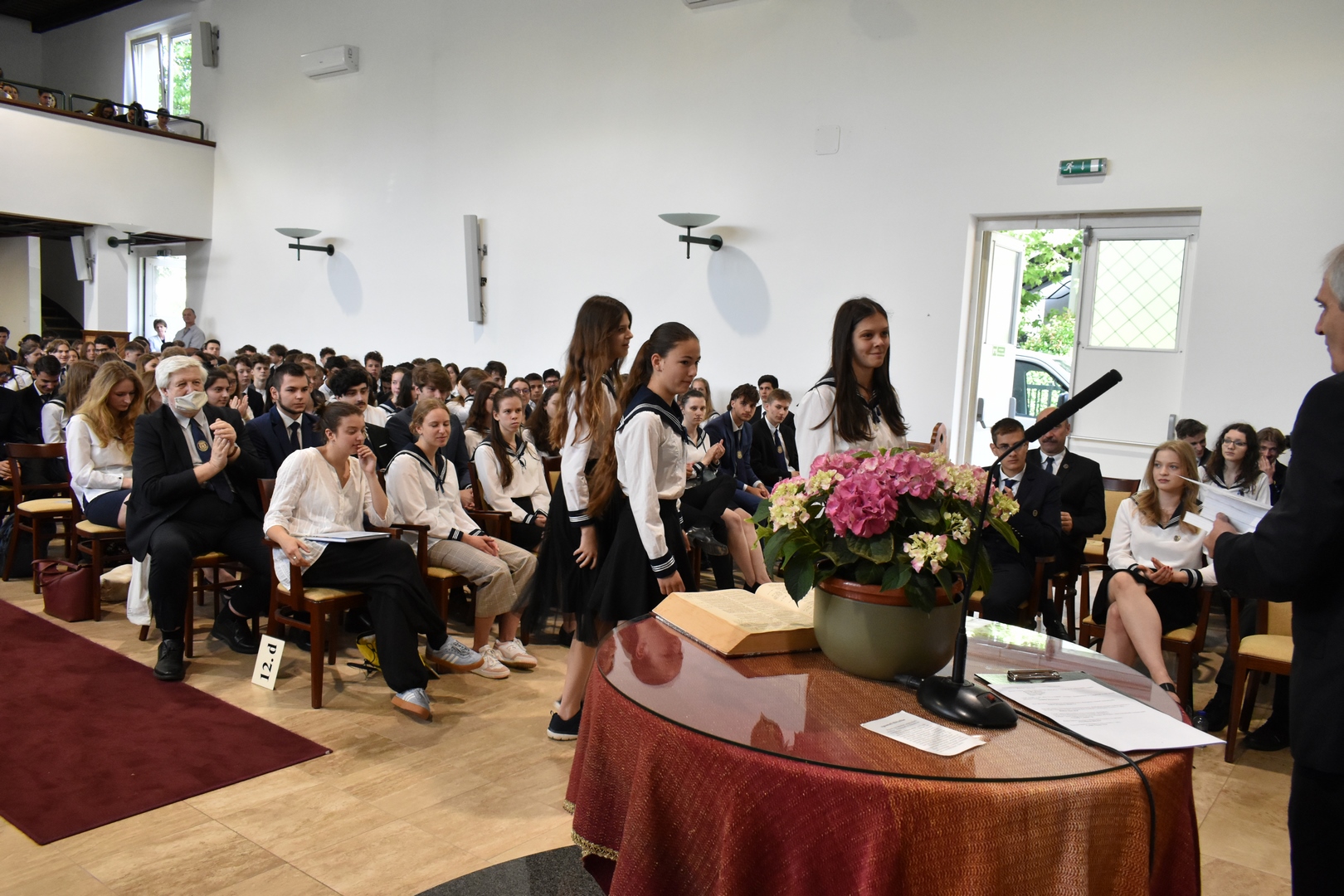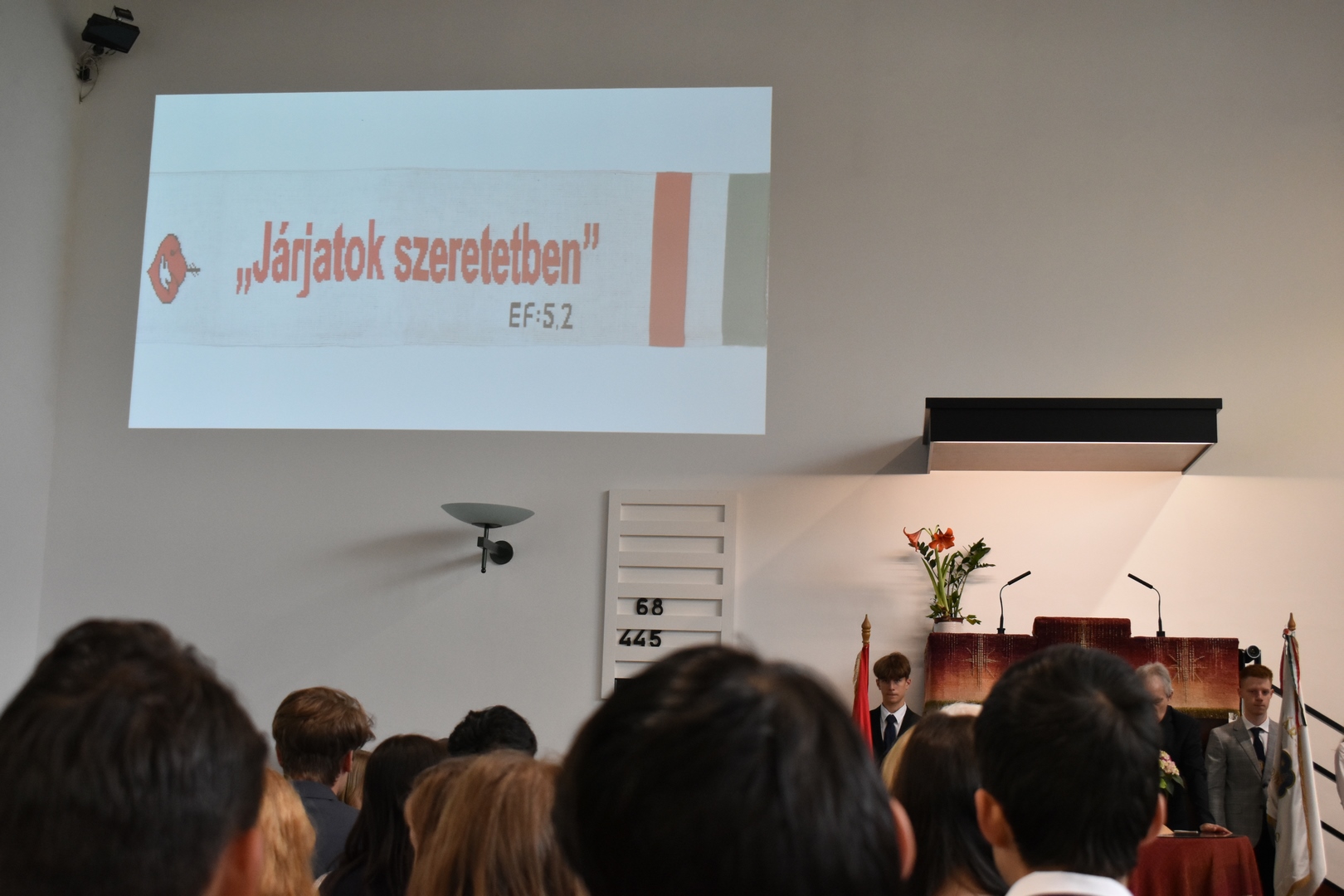 Az elmúlt szombaton tartottuk meg a gimnázium szokásos évzáró ünnepségét. Székely Tamás, iskolalelkészünk bátorító szavai után Tombor László igazgatónk szó szerint színes évzáró beszédet tartott, ahol a diákok-tanárok lelkiségét ábrázolta szurkolói sálakkal és Isten igéjével. Érdekes volt ezek tükrében magunkról gondolkodni... Az évzáró leghosszabb része - nagy örömünkre -, a rengeteg év végi jutalom, a kitűnők hosszas felsorolása, az országos és nemzetközi versenyeken szerzett díjeső összegzése volt, ahol hálás szívvel gondolhattunk arra, hogy ismét sokan kaptak méltó elismerést munkájukért. Azonban a lényeg, amely az igehirdetésben is elhangzott, hogy az élő Jézussal és mennyei Atyánkkal kapcsolatban legyünk, jusson eszünkbe, hogy minden, ami jó, Tőle száll alá, a világosság Atyjától.