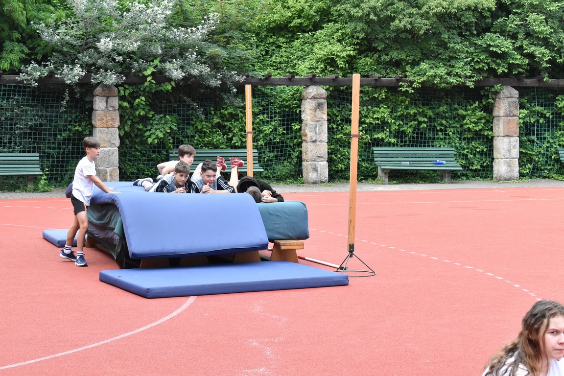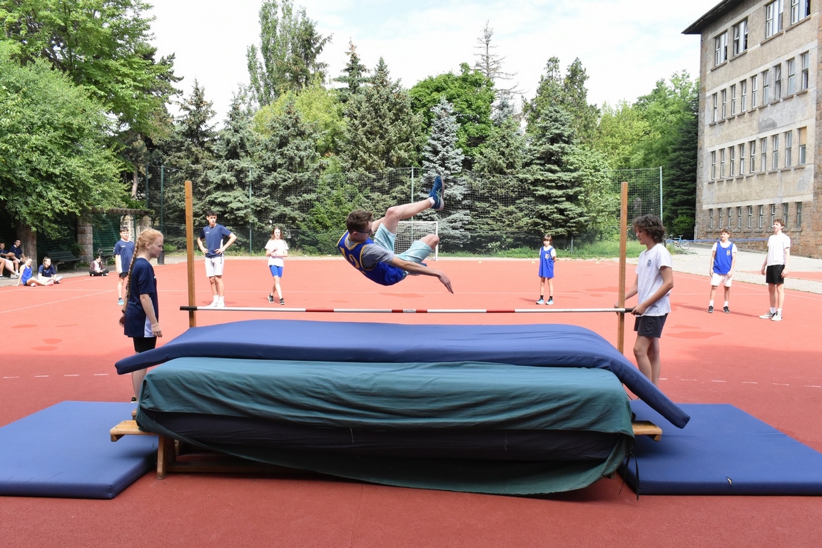 A sportprogramok keretében a felsős osztályokból arányosan elosztva hat vegyes korú csoportot alakítottunk, akik három állomáson mérték össze egymással erejüket, ügyességüket. Az első állomáson ügyességi, a másodikon atlétikai számokban, a harmadikon röplabda, foci és kosárlabda mérkőzéseken ügyeskedtek csapatok. A jó hangulatú délelőtt igazi csapatmunka volt a vegyes korosztályú gyerekek és a szervező-lebonyolító tanárok számára egyaránt. Eredményhirdetés előtt még két iskolacsúcs is született, az ötödikes Pál Menyhért Leo 100 db szabályos fekvőtámasszal írta be magát a Baár-Madas csúcstartói közé, Lacza Botond pedig 395 dekázással tette ugyanezt. (Nem hitelesítve, de az a csúcs délutánra 950-re emelkedett egy lelkes hatodikos révén.)