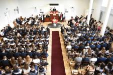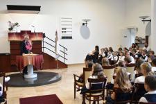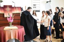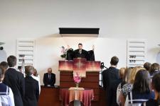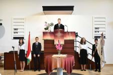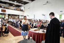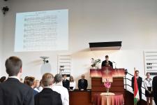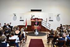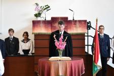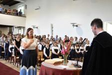De régen hallottuk a háromhangú dudaszót, szinte el is felejtettük, szó-mi-dó... Szó, ami szó, jó volt látni a részben lebarnult, részben kipirult arcokat a pasaréti templomban, ahol előbb a gimnázium, aztán az általános iskola évnyitó istentiszteletére gyűltünk össze. Az igét Székely Tamás iskolalelkészünk hirdette, a filippi börtönőr híressé vált kérdése alapján: Mit kell cselekednem, hogy üdvözüljek? Az igazgatói beszéd aztán a fogadalomtételre reflektált: Tombor László különböző fogadalmak, esküszövegek nehéz és felelősségteljes részleteivel példázta, hogy nem egyszerű szavatartónak lennünk. Az élő Isten azonban nem hagy egyedül a nehéz időkben, nehéz vállalásaink között sem. Van tehát kit segítségül hívnunk, van kihez fordulnunk. Így induljunk együtt az új tanévben!