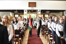 De régen hallottuk a háromhangú dudaszót, szinte el is felejtettük, szó-mi-dó... Szó, ami szó, jó volt látni a részben lebarnult, részben kipirult arcokat a pasaréti templomban, ahol előbb a gimnázium, aztán az általános iskola évnyitó istentiszteletére gyűltünk össze. Az igét Székely Tamás iskolalelkészünk hirdette, a filippi börtönőr híressé vált kérdése alapján: Mit kell cselekednem, hogy üdvözüljek? Az igazgatói beszéd aztán a fogadalomtételre reflektált: Tombor László különböző fogadalmak, esküszövegek nehéz és felelősségteljes részleteivel példázta, hogy nem egyszerű szavatartónak lennünk. Az élő Isten azonban nem hagy egyedül a nehéz időkben, nehéz vállalásaink között sem. Van tehát kit segítségül hívnunk, van kihez fordulnunk. Így induljunk együtt az új tanévben!