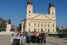 Október 14.-én Debrecenbe kirándult a 11.C. osztály. Gyönyörű időben és jó hangulatban gyorsan elszaladt ez a nap! Jó vonatra szálltunk fel, szépeket láttunk, nagyokat nevettünk, és megismertük egy picit a várost és református örökségünket. Megnéztük a Nagytemplomot, felmásztunk a Rákóczi haranghoz a toronyba, ebédeltünk az Emlékkertben, megtaláltuk a Lícium fát, vezetéssel megnéztük az „Ország Oskoláját”, a Református Kollégiumot. Itt beülhettünk a régi padokba, írtunk palatáblára, megnéztük, hogy melyik fiú lehetett volna önkéntes tűzoltó a kollégiumban (aki ki tudta tartani a tűzoltó botot, a Gerundiumot), láthattuk a csodaszép könyvtárat, jártunk Kossuth Lajos, Kölcsey Ferenc, Arany János, és Csokonai Vitéz Mihály nyomában a régi lépcsőkön és az Oratóriumban. Délután még csoportokban versenyeztünk egy városismereti sétán (a 4 fiú nyert), és volt még időnk könyvesboltba menni, megkeresni a 200 éves tölgyfát és meginni egy finom capuccinót. Olyan jól éreztük magunkat, hogy megbeszéltük: még visszajövünk! Vannak ötletek: stadion túra, meccsnézés, Nagyerdei strand, Szabó Magda Emlékház, Déri Múzeum – amik most nem fértek bele 1 napba.