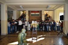 Jézusunk hangja, szólítása, kopogtatása nyitott szívekre talált hétfőn délelőtt. Diákok, tanárok és iskolánk dolgozói közösen gyújtottunk gyertyát első adventi hétfőnkön és énekeltünk adventi énekeket. Sok évtizedes hagyományt folytattunk ezen a napsütötte hétfői délelőttön. Jó volt átélni, ahogy az énekhang betöltötte falainkat, s talán ez a rezgés valahol mélyebben is rezdült. Egy kis meghittség, s a nap mosolygósabb folytatása - talán tényleg ajtónyitogatóak ezek az ünnepi dallamok...