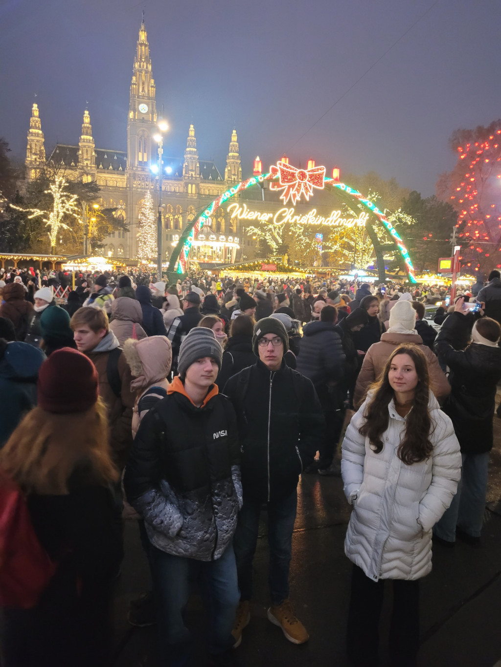 December 9-én a kolesz egy része, néhány testvérrel kiegészülve Bécs felé vette az irányt. 6 órakor el is indultunk busszal, bár volt, aki még nem teljesen ébredt fel. Csak Mosonmagyaróváron álltunk meg, ahol egy kis kávéval, teával igyekeztünk felébreszteni magunkat. Bécsbe körülbelül 10 órára értünk oda, ahol először a Schönbrunni kastélyt és az előtte található adventi vásárt tekintettük meg. Innen utunk a belvárosba vezetett. Ennek felfedezése után a Rathausparkba mentünk, és a Christkindelmarkt vásárban töltöttük időnket. A hidegben azért igyekeztünk magunkat egy kis forrócsokival, teával felmelegíteni. Aki akarta, az ételeket is kipróbálhatta, vagy akár egy kis kézműves apróságot is vehetett. A hazafele tartó úton, aki akarta, ki is pihenhette magát, bár a jó hangulatra itt sem volt panasz. A nap végéhez közeledve már mindenki fáradt és elégedett lehetett. Sörös Benedek (9.c) beszámolója